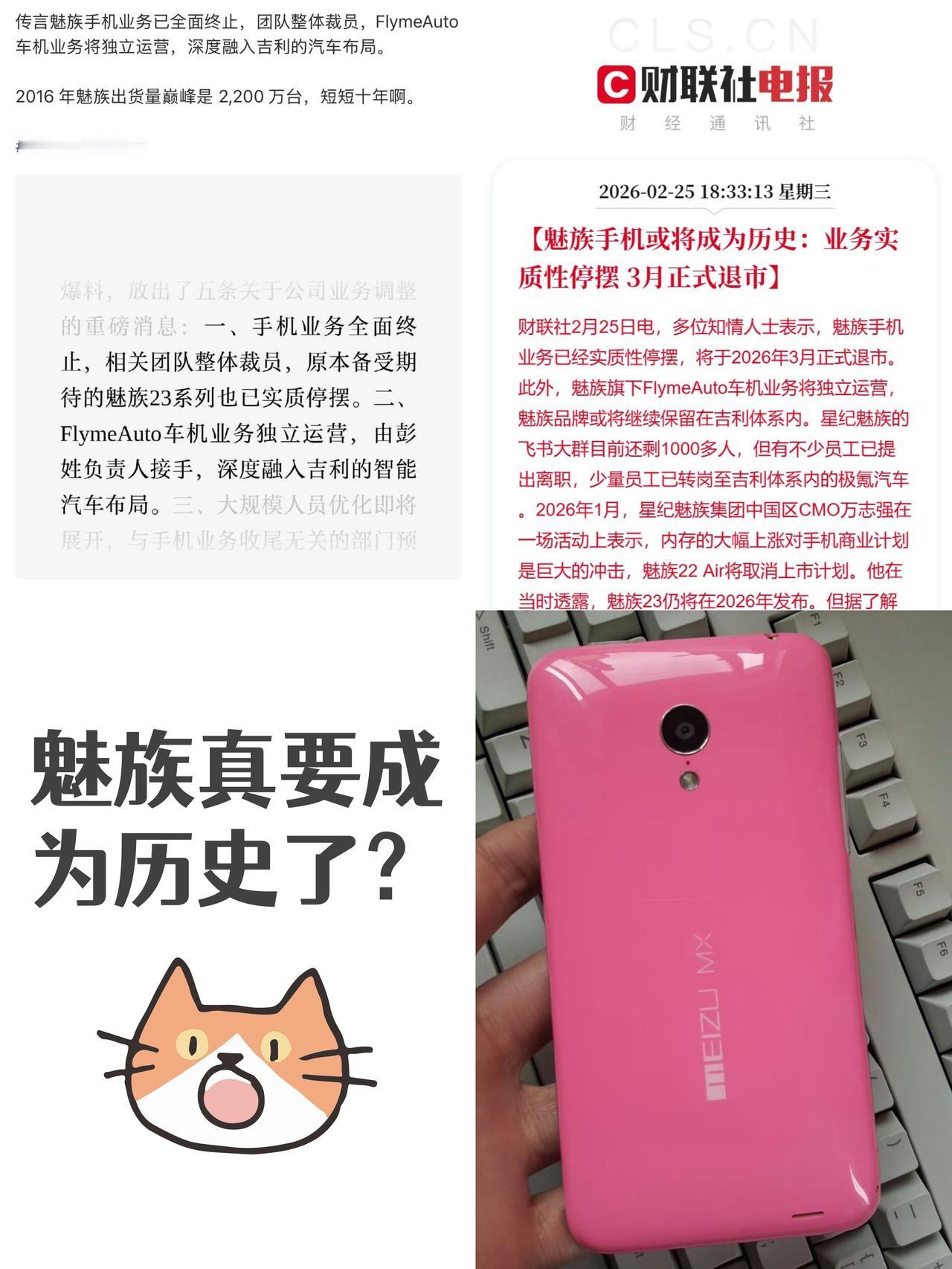 天塌了😭魅族手机真要成为历史了? 这消息可信度高吗? 说是魅族手机业务停掉了 又消失一个手机品牌! 让我想到了曾经的锤子😭 🤔不过现在魅族的市占率却是低 我作为曾经的煤油都已经两三年没换魅族了 市场占有率低的品牌虽然号称👉小而美 但产能决定了品控,就像老罗的锤子手机,你出货量低,只能跟三四线组装厂合作,可能是真没办法了...
