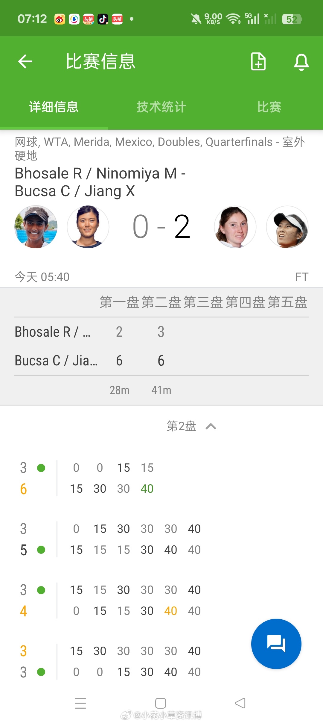小花小草资讯 【🇲🇽梅里达WTA500】女双四分之一决赛🇨🇳蒋欣玗/🇪🇸布克沙6-2/6-3 🇯🇵二宫真琴/🇮🇳博霍塞雷晋级四强收获195分 (起积分 108)