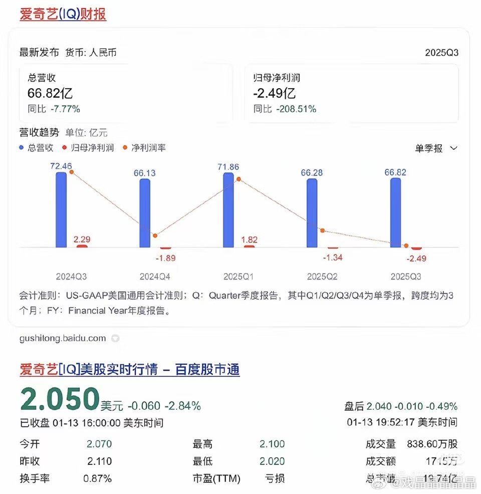 爱奇艺发布2025Q4及全年财报,全年亏损!老呃关系最好的🍑也不行了。