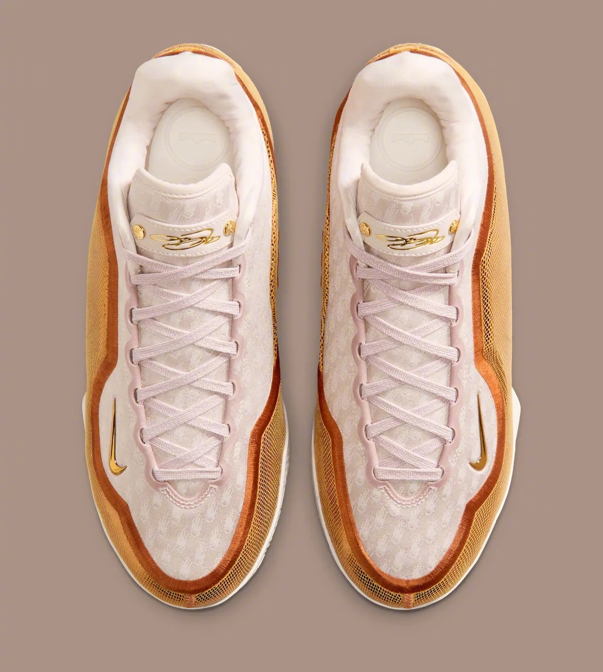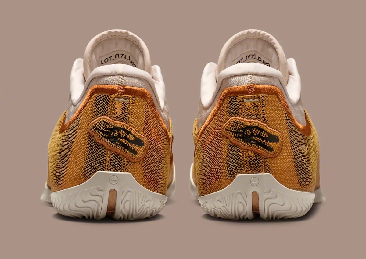 詹姆斯LeBron 23「屠龙战士」配色官图,灵感源自勒布朗·詹姆斯2015-2018年间的季后赛对多伦多猛龙队12胜2负的统治级表现,多伦多被网友戏称「LeBronto」,配色运用了金色的王官与恐龙化石色调的组合🦖👑