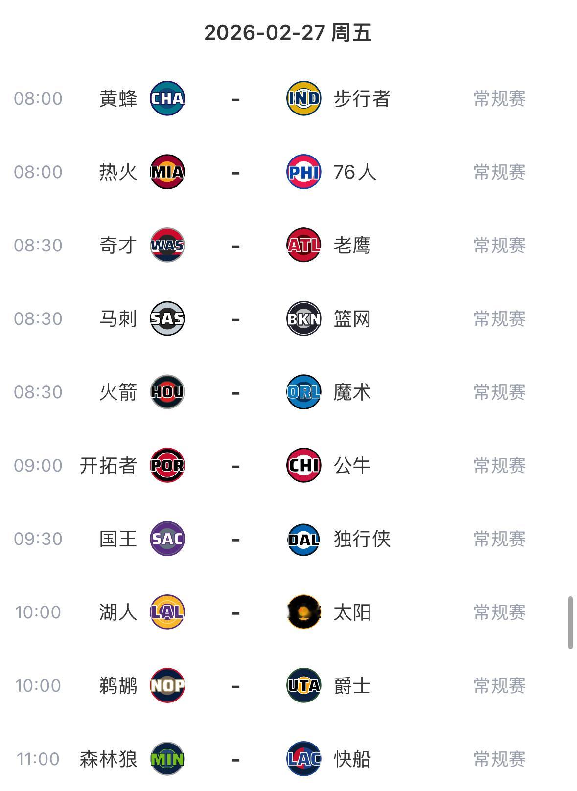 【2月27日|NBA常规赛】———————————————🔥 8:30 |马刺vs篮网🚀 8:30 |火箭vs魔术🔥 10:00|湖人vs太阳