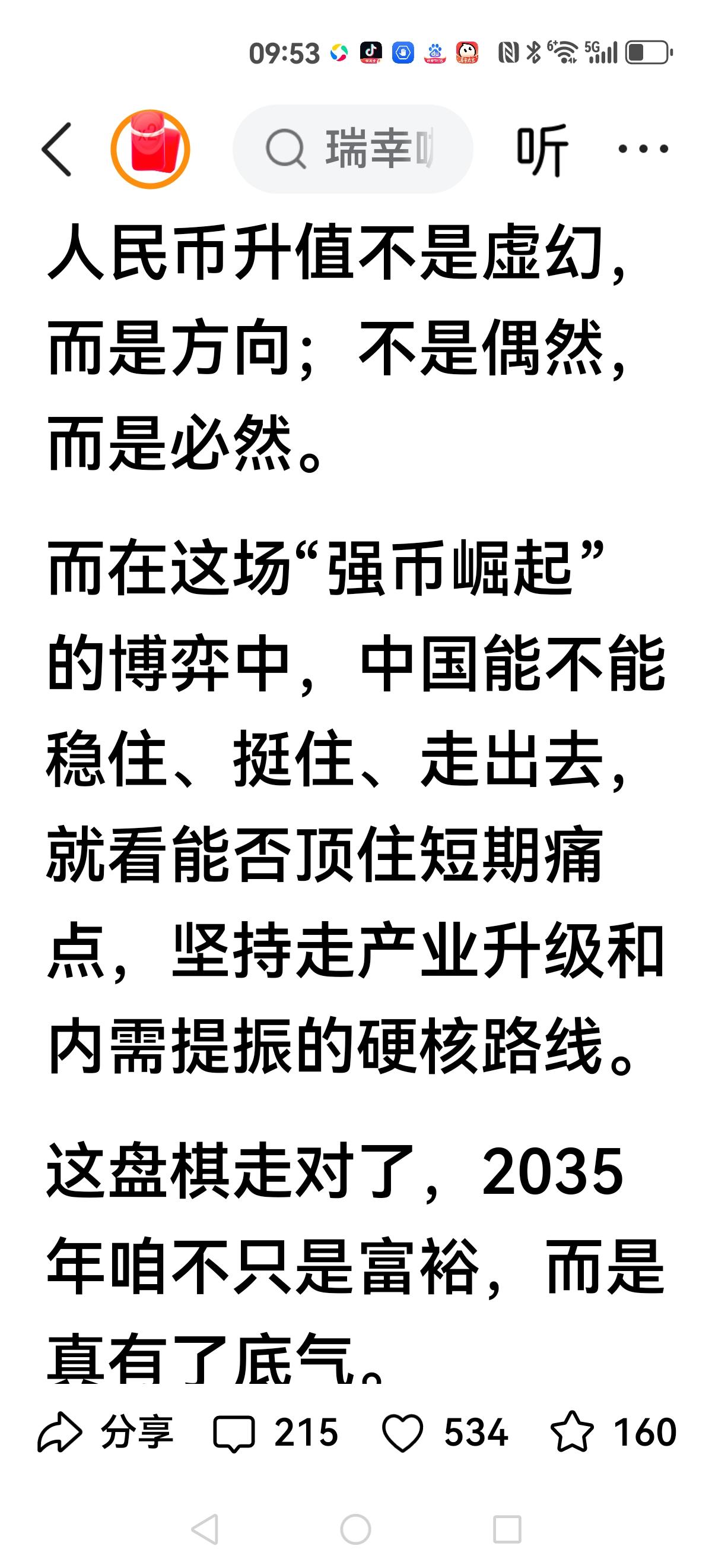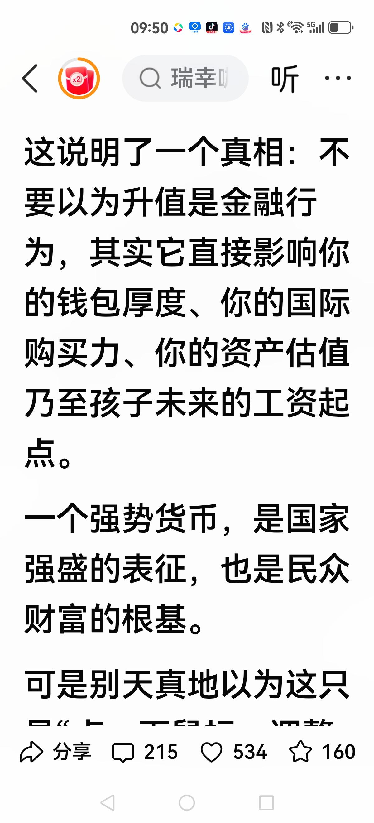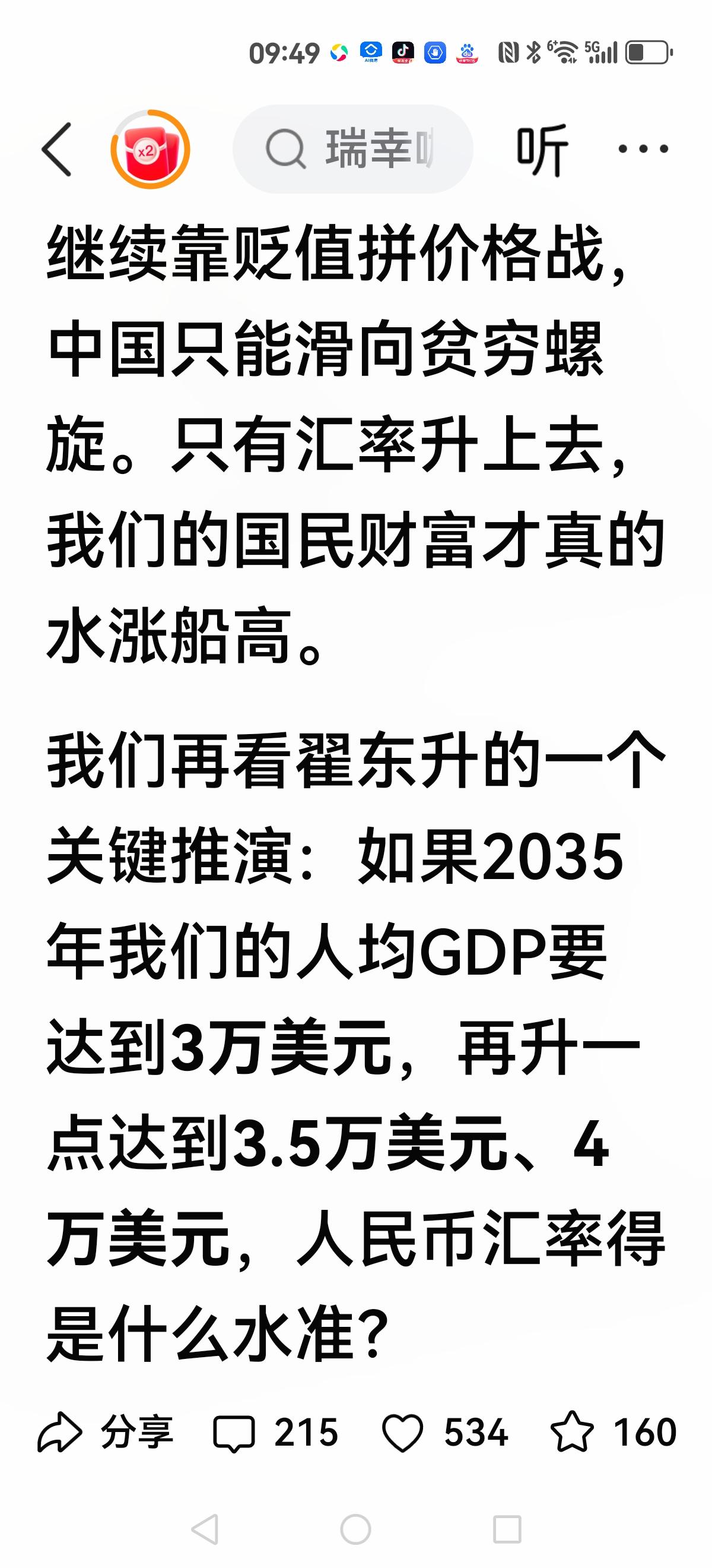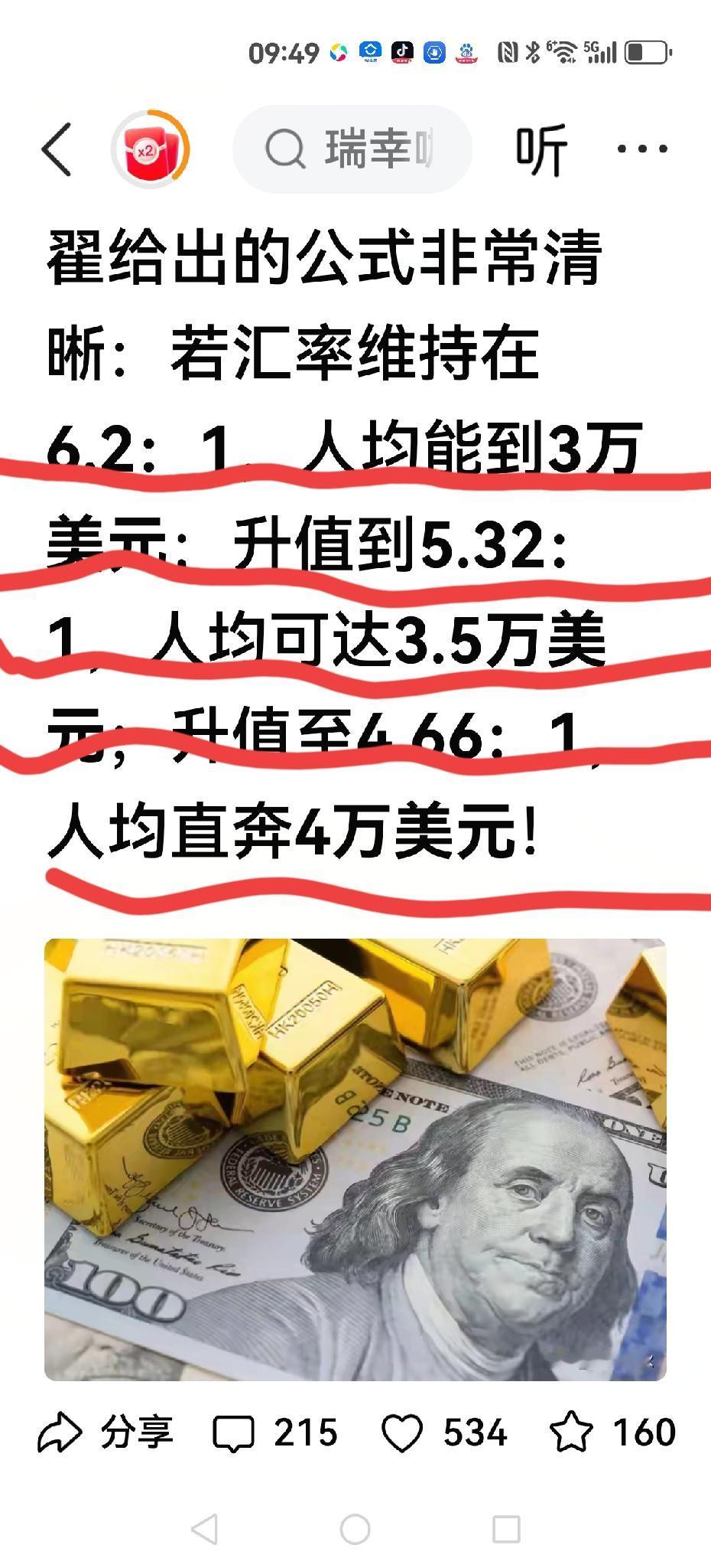 【贬值赚得碎银,升值塑造英雄】 郎咸平呼吁警惕升值太快,导致走日本的老路,三十年没有回过来。 而另一位学者提出:贬值赚的碎银,升值塑造英雄。 他列举升值到某一点,人均达到高度,如果1:4.66,那人均就是4万美元。 双方争论就是贬值与升值,最终关键是你有没有信心购买人民币资产。 你还是去配置美元资产?
