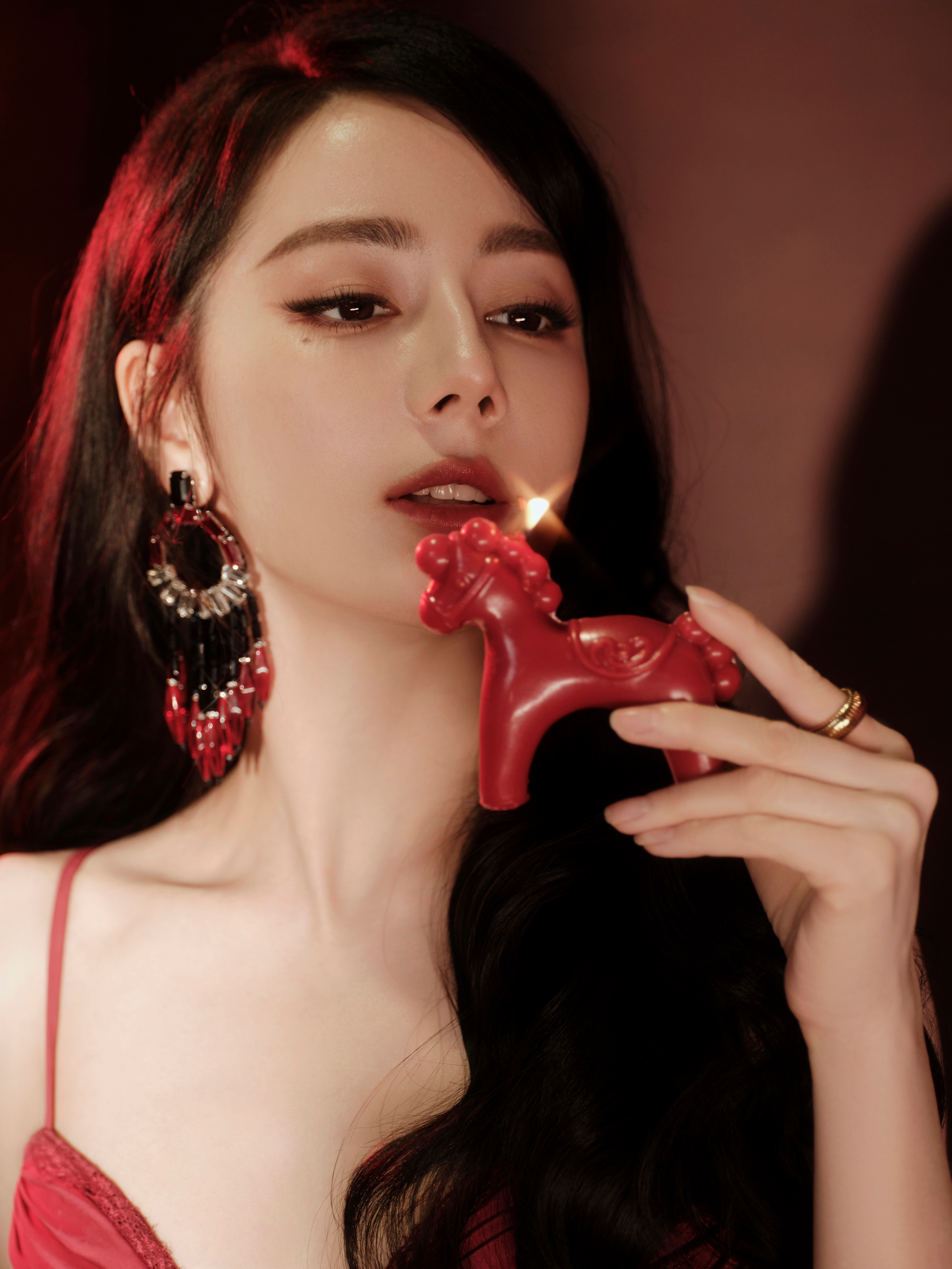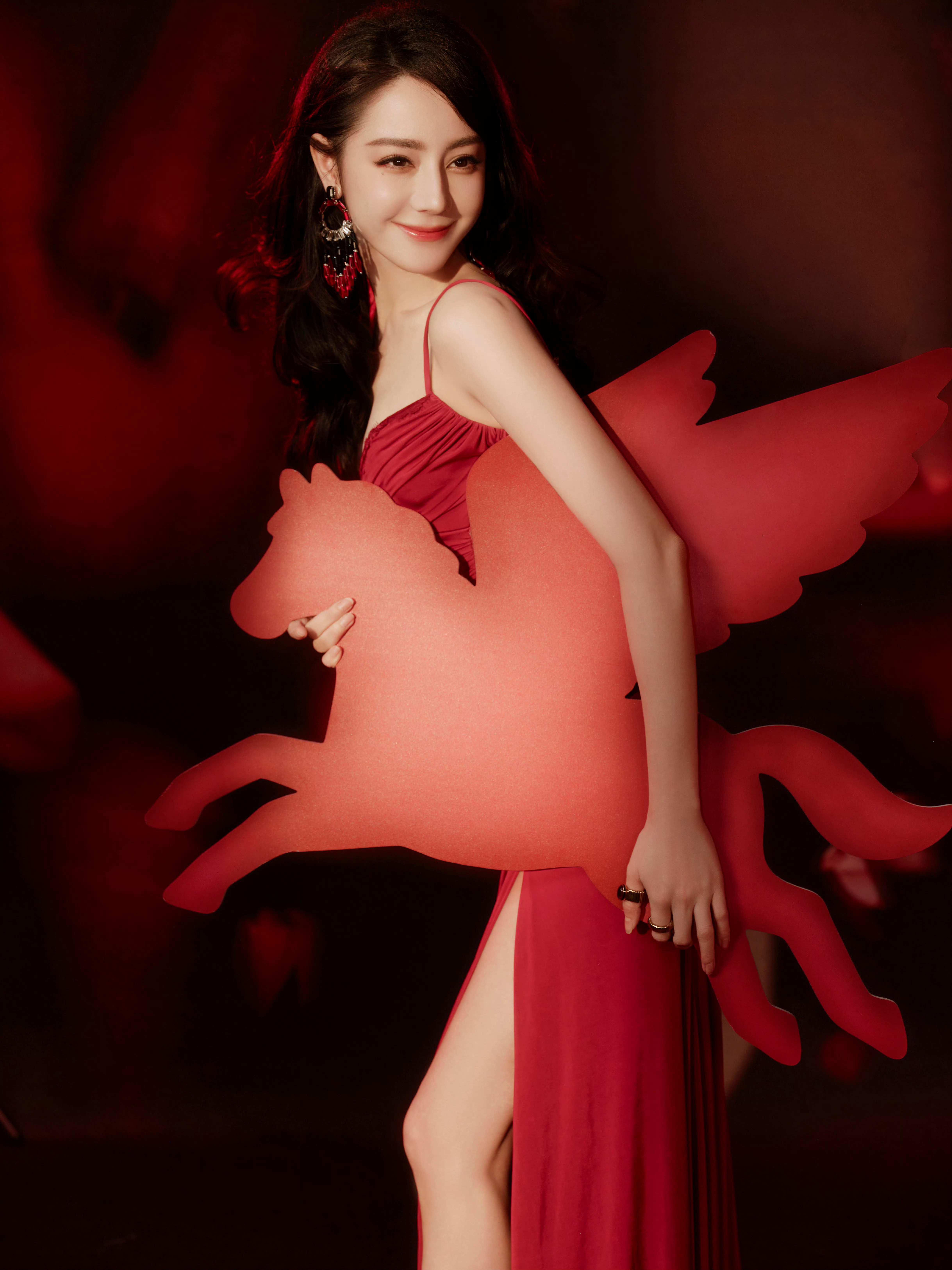 迪丽热巴性感红裙