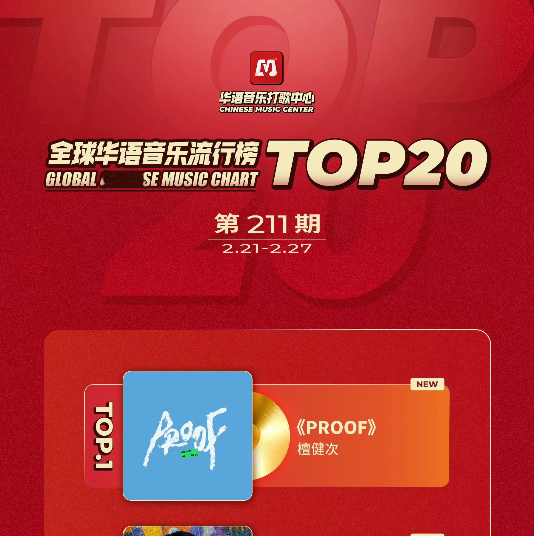 檀健次《PROOF》登顶华语音乐打歌中心全球华语音乐流行榜,实至名归,PROOF
