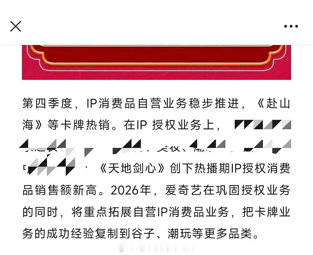 🥝Q4财报还在吹Q3的剧提到自营卡牌《赴山海》 《天地剑心》创IP热播期授权消费品销售额新高 成毅在真金白银方面的号召力牛的