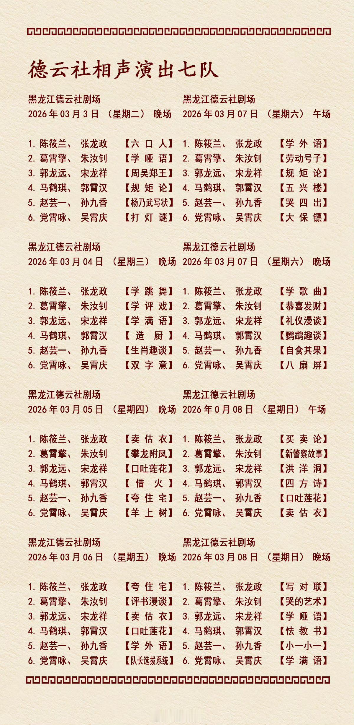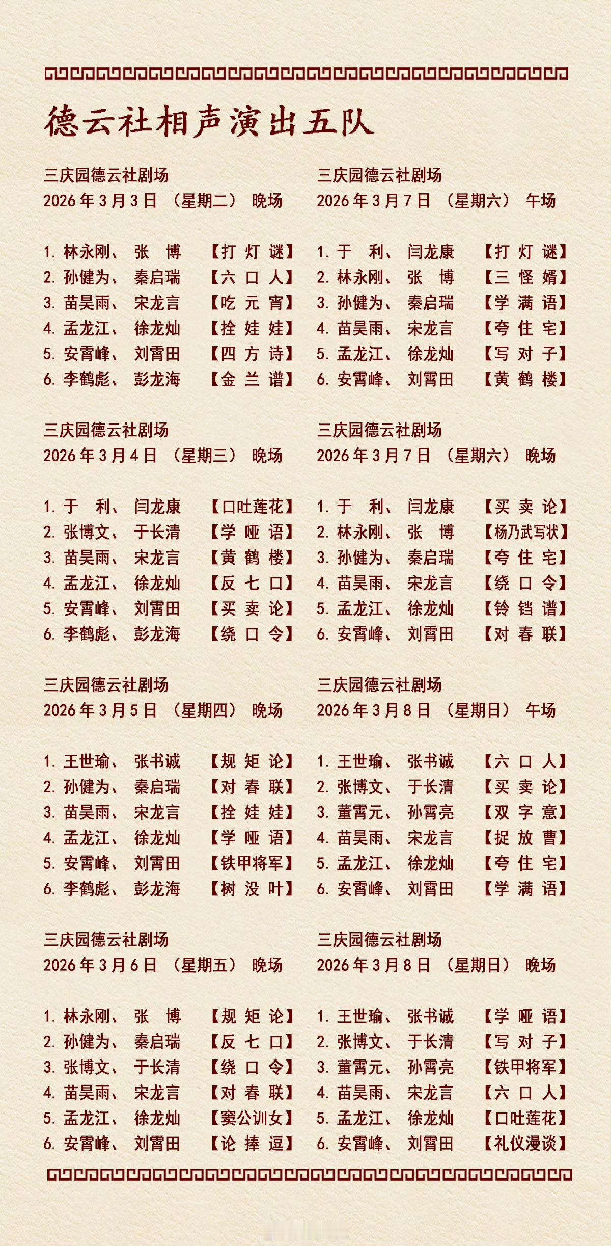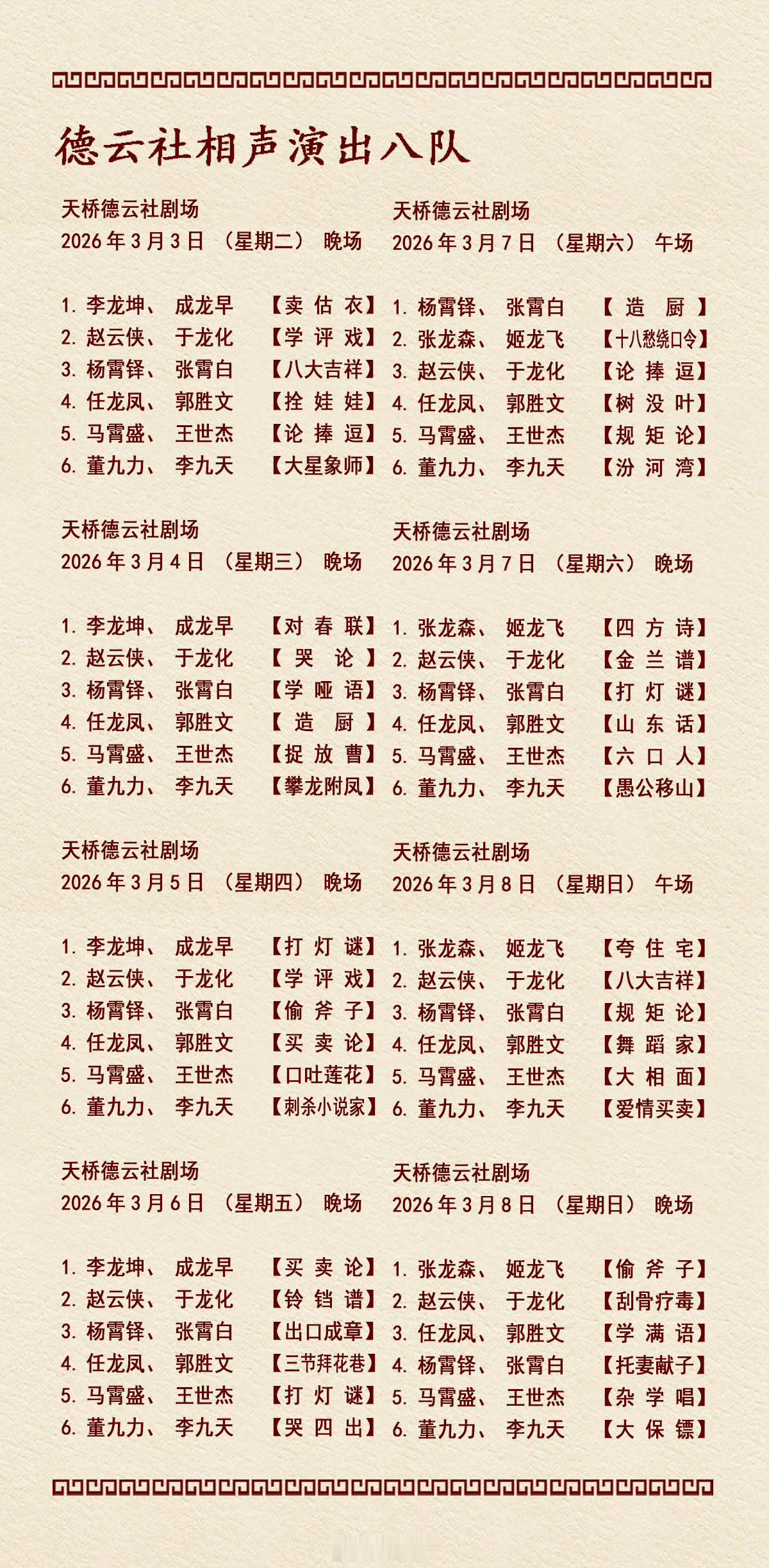 2026年3月2日-3月8日德云社各队演出节目单,有啥看点一起分享