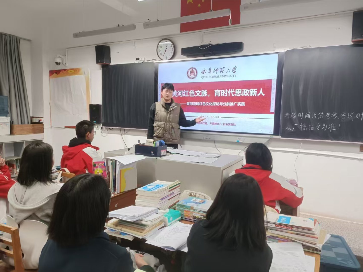秦岭笑谈薪火永相传青春赋新声寒假实践正当时大学生社会实践 【探红色文化根脉,育时代思政新人】为深挖齐鲁文化红色底蕴,传承红色基因、赓续革命文脉,曲阜师范大学教育学院“九曲寻红韵,齐鲁续文心”社会实践队15名队员积极响应大学生寒假社会实践号召,于2026年1月开展为期两周的系列实践活动。活动以“访教育展馆+进中学宣讲+研文化传承”为主线,扎实开展实地调研与文化宣讲。实践期间,队员们走进中国教师博物馆,认真参观红色教育史料、革命教学实物与先进教育工作者事迹展区,深入学习教育救国、教育兴邦的奋斗历程。大家结合教育学专业知识,梳理齐鲁红色教育发展脉络,认真记录、交流心得,为后续宣讲与调研积累素材。随后,队员们走进中学开展红色文化宣讲,用生动鲜活的案例讲述革命先辈与教育先驱的感人事迹,引导青少年坚定理想信念、厚植爱国情怀。同时,队员们通过座谈交流、资料整理,总结红色文化传承路径,形成实践成果。通过本次实践,实践队员们切实完成了红色文化探访、宣讲服务与调研总结等任务,将专业学习与社会实践紧密结合,不仅提升了自身综合能力,也为红色文化在校园和基层的传播贡献了青春力量。