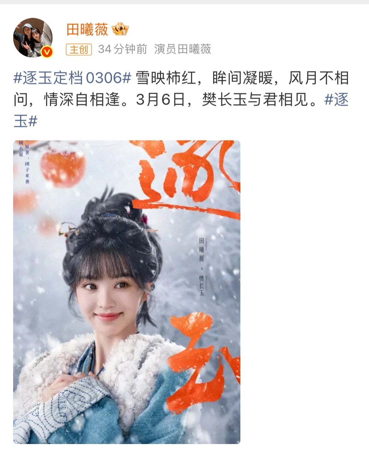 张凌赫田曦薇逐玉定档0306啦!!!有没有期待的?感觉都在压爆啊