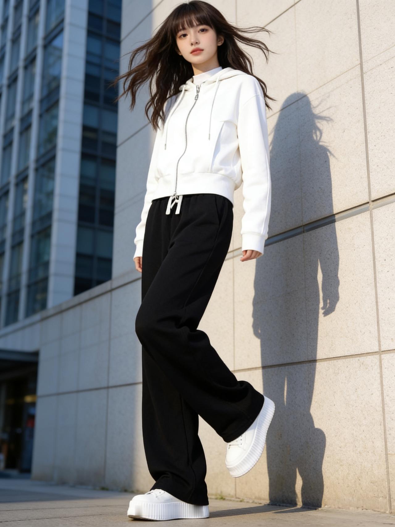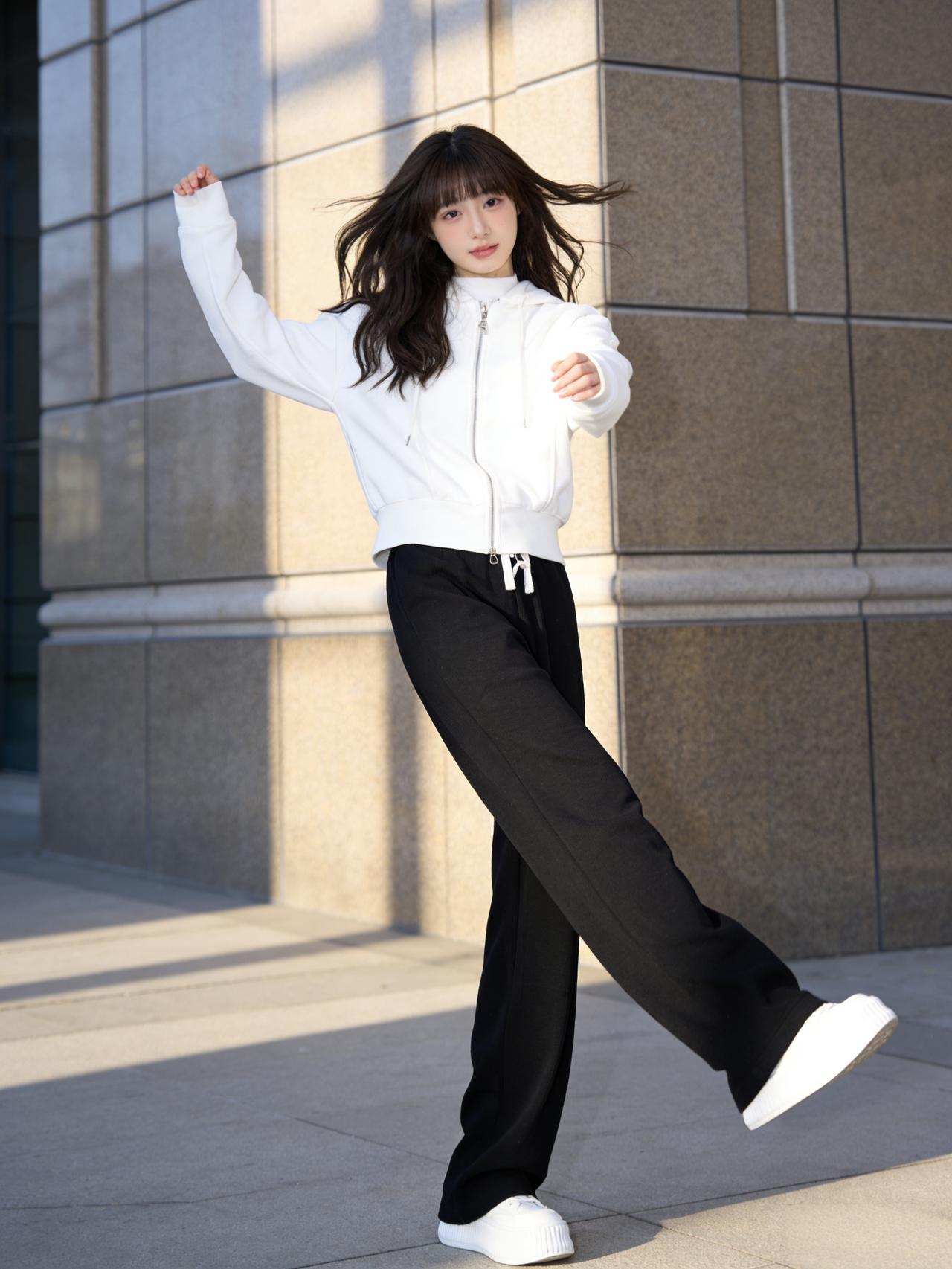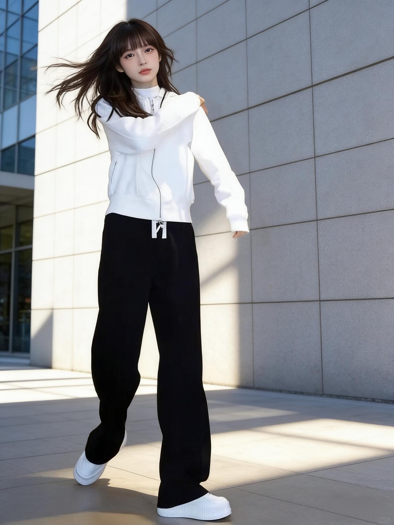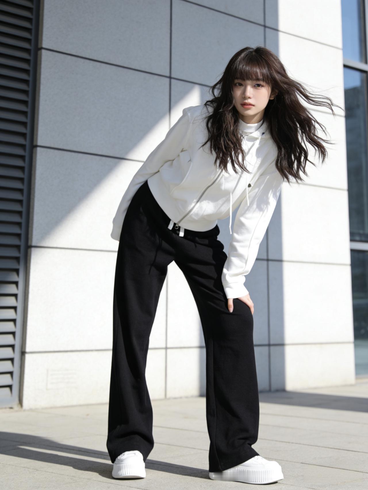 黑色中山装自带沉稳儒雅气质,线条利落,藏着东方风骨。搭配一顶简约白色棒球帽,瞬间