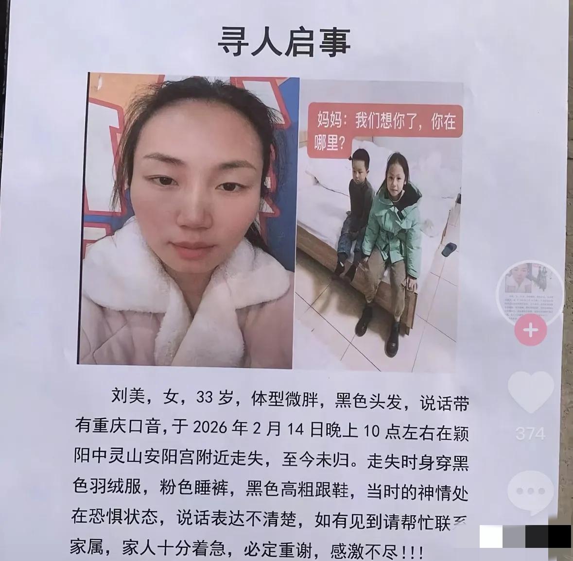 失联10天的33岁重庆女子遗体被找到!没想到,她居然是穿着高跟鞋在下午进山的。彼时,她们一家4口人整整齐齐的来到了河南中灵山祈福,可没想到,等回来的时候却只剩下三人。 这个可怜的女人名叫刘美,她和丈夫都是重庆人。 在这个新年前夕,刘美一家人决定外出旅游,他们的目的地便是河南。 粉色睡裤、粗跟鞋、光着脚、神情恐惧——这些细节凑在一起,看的人心里直发毛。33岁的重庆妈妈刘美,本来一家四口开开心心去河南中灵山祈福,结果回来只剩三个人。失联10天后,她被发现在垂直200多米的山崖底下,法医鉴定是高坠死亡。 这事最让人想不通的是,她当天下午上山时穿着高跟鞋,有人看见她还光着脚在山上走,监控拍到的画面里她满脸恐惧。丈夫的解释是,她走累了把鞋脱了,到山顶后状态就不对了,"很害怕,不愿意下山",问怕什么就只是摇头。 现在刑警已经介入调查。家属说,这次来中灵山是刘美执意要来的,她社交账号里收藏了好多相关讯息。一个从没来过河南的人,为啥非要去这座山?上山后到底经历了什么,让她怕成那样? 两个娃还在家里等着妈妈,最大的才8岁。33岁,说没就没了。这件事留了太多问号——是意外失足,还是另有隐情?你觉得这些反常的细节,该怎么解释?
