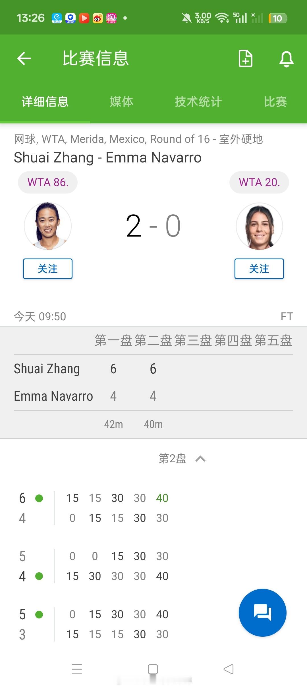 小花小草资讯小花小草资讯 【 🇲🇽梅里达WTA500】女单正赛第一轮🇨🇳资格赛突围的张帅6-46-4击败2号种子🇺🇸球员卫冕冠军纳瓦罗晋级八强张帅收获133分即时排名66位