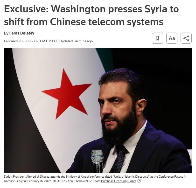 据路透社报道,美国警告叙利亚不要采用东大电信技术,称其存在安全风险且有损美国利益。