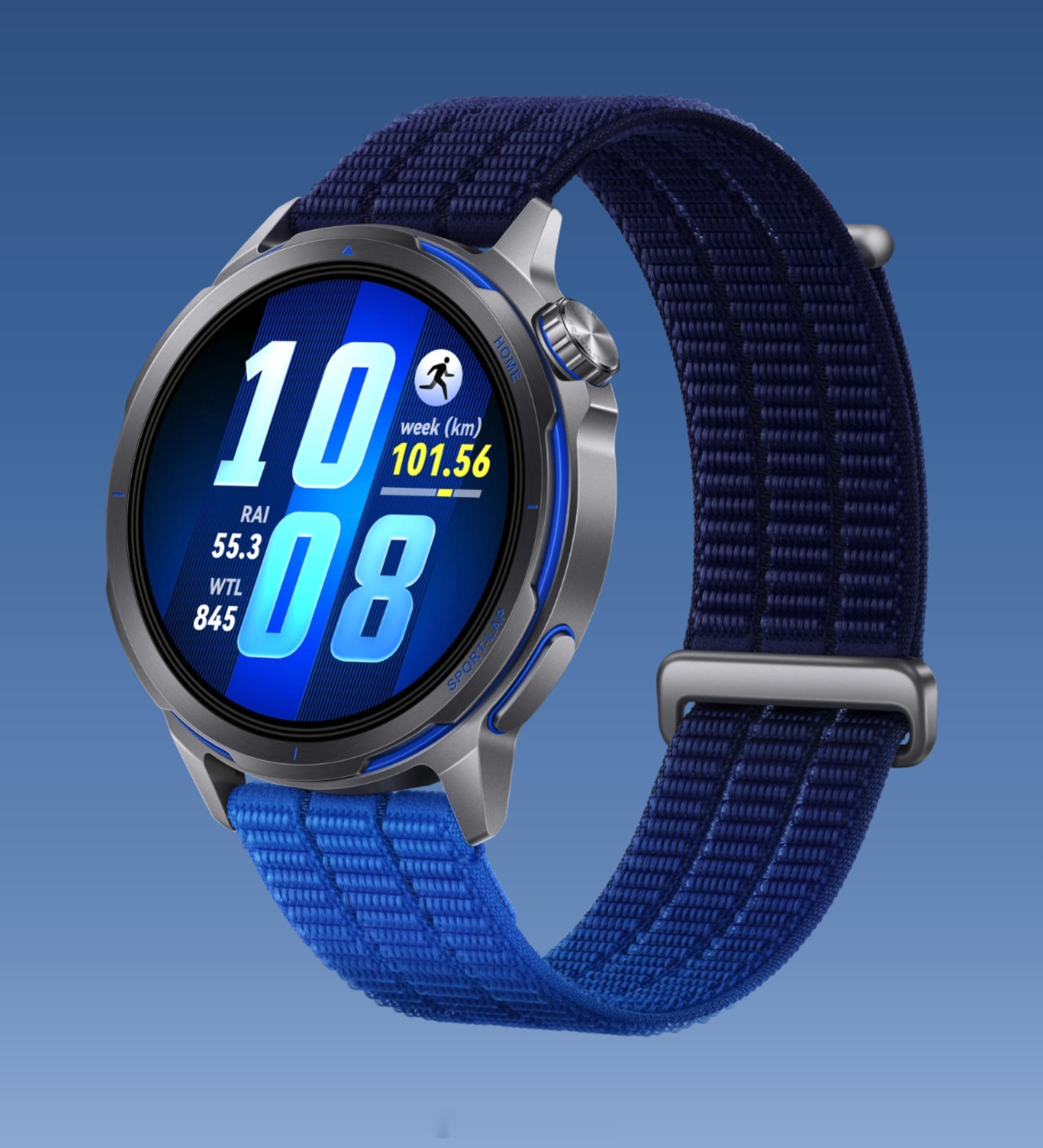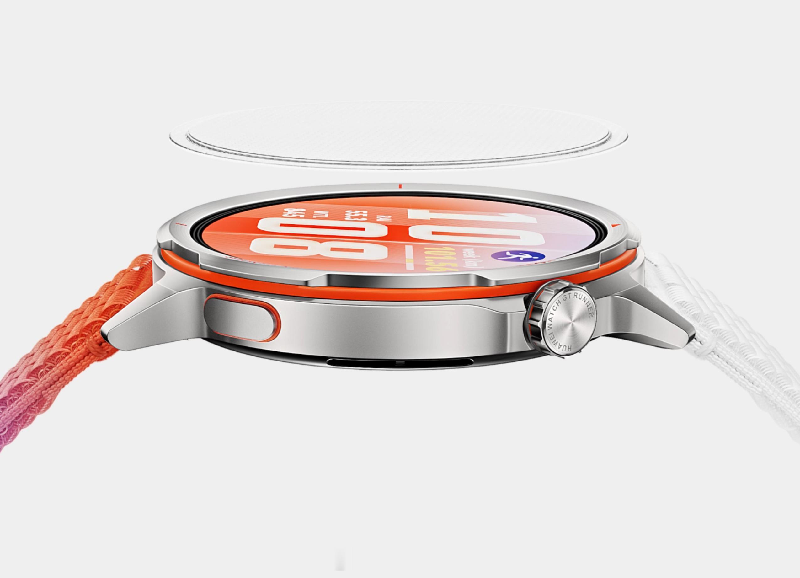 - 尺寸 & 颜色:43.5×43.5×10.7mm,表体重 34.5g,暮光蓝、晨曦橙、午夜黑 3 款配色,含氟橡胶和华为 AirDry 尼龙编织两款表带,表框从增强型聚合纤维钛合金,底壳依旧为增强型聚合纤维,电源按钮升级为旋转表冠;