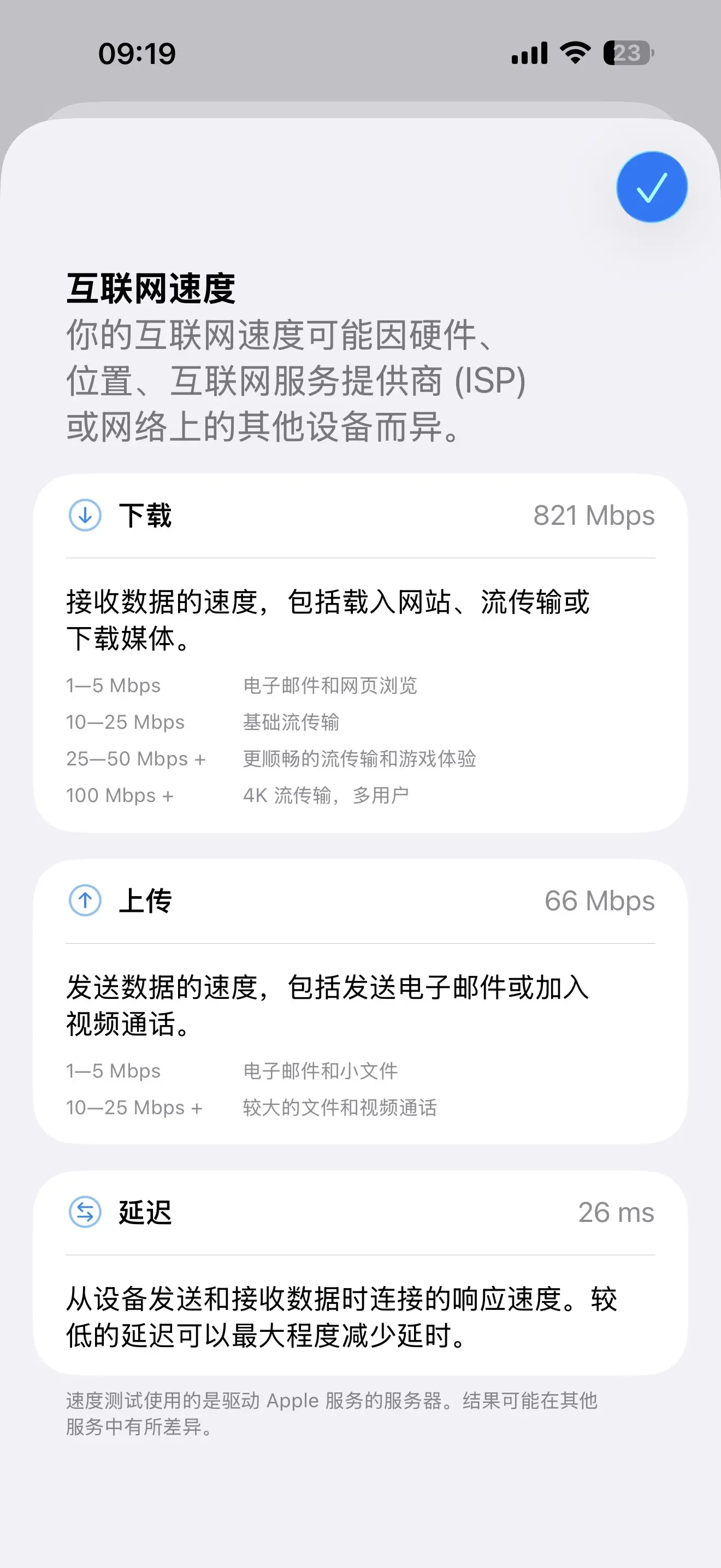 升级到ios26苹果可以测网速了,快看看你家网速如何吧