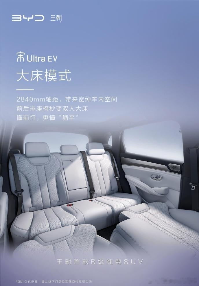 比亚迪宋Ultra EV内饰官图来了,2840mm 轴距,前后座椅可秒变双人大床,网友猜测价格或在18万左右,大家觉得高不高?比亚迪宋Ultra EV新能源汽车