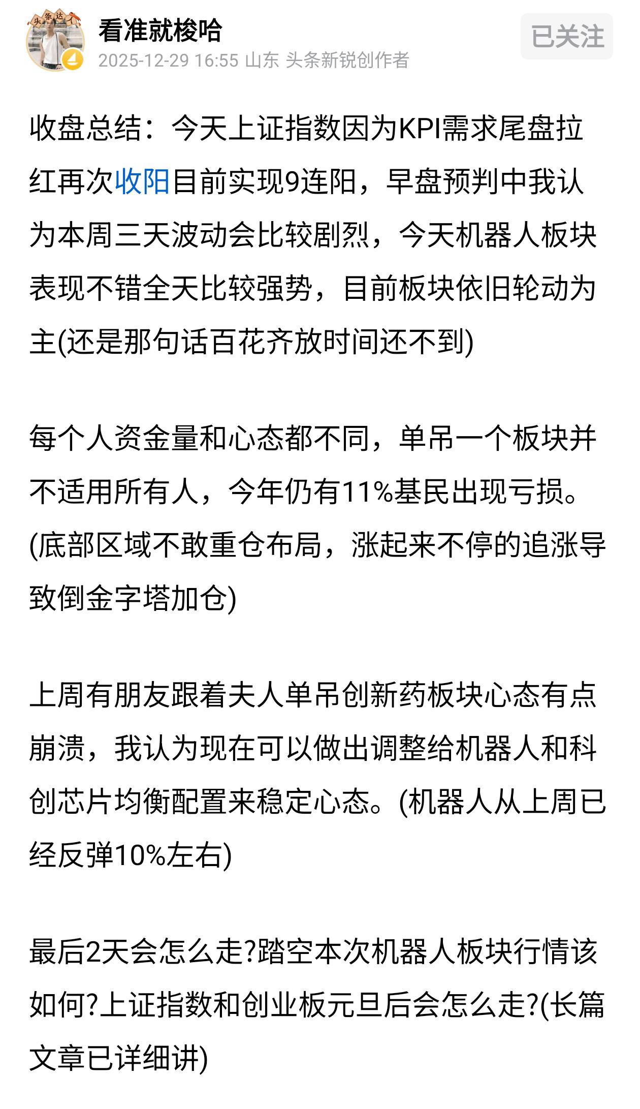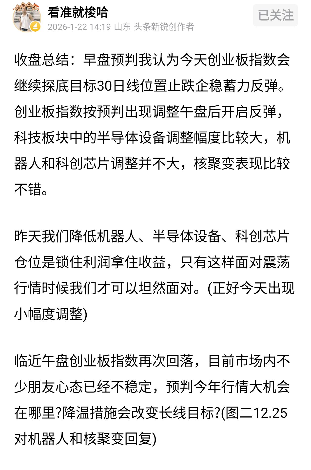 周末行情回顾:春节后本周四个交易日走势均为跷跷板效应,目前可以判断是节前流出融资盘目前回流方向都在中证500、中证1000的中小盘股。场外老乡还没完全走出1月中下旬降温措施中走出来。无明显增量资金就无百花齐放行情。(这也是我一直提示管住手莫追涨莫满仓原因) 我们一定要有自己思路该出手时候果断出手,该耐心等待时候就放平心态等待,我们再次回顾1.21我们机器人板块和科创芯片降低仓位位置以及增配软件和机器人板块位置。(最怕一路追涨买入高位加仓)东方核聚变从最高15%回撤5%再突破新高到达目前21%。(1.8文章含金量还在提升) 自从1月下旬控温开始后,我对行情的预期就下调到慢牛,最低仓位6.5成仓后来伴随着板块调整增配8.5层目前还没有满仓。(目前我认为处于春节后行情启动前不排除月初蹲下蓄力) 炒股那么多年,你悟到了哪些道理 机器人、人工智能该如何取舍?
