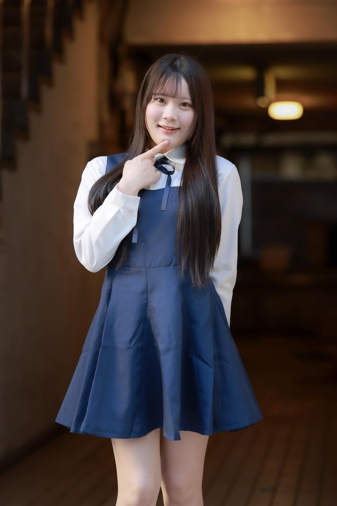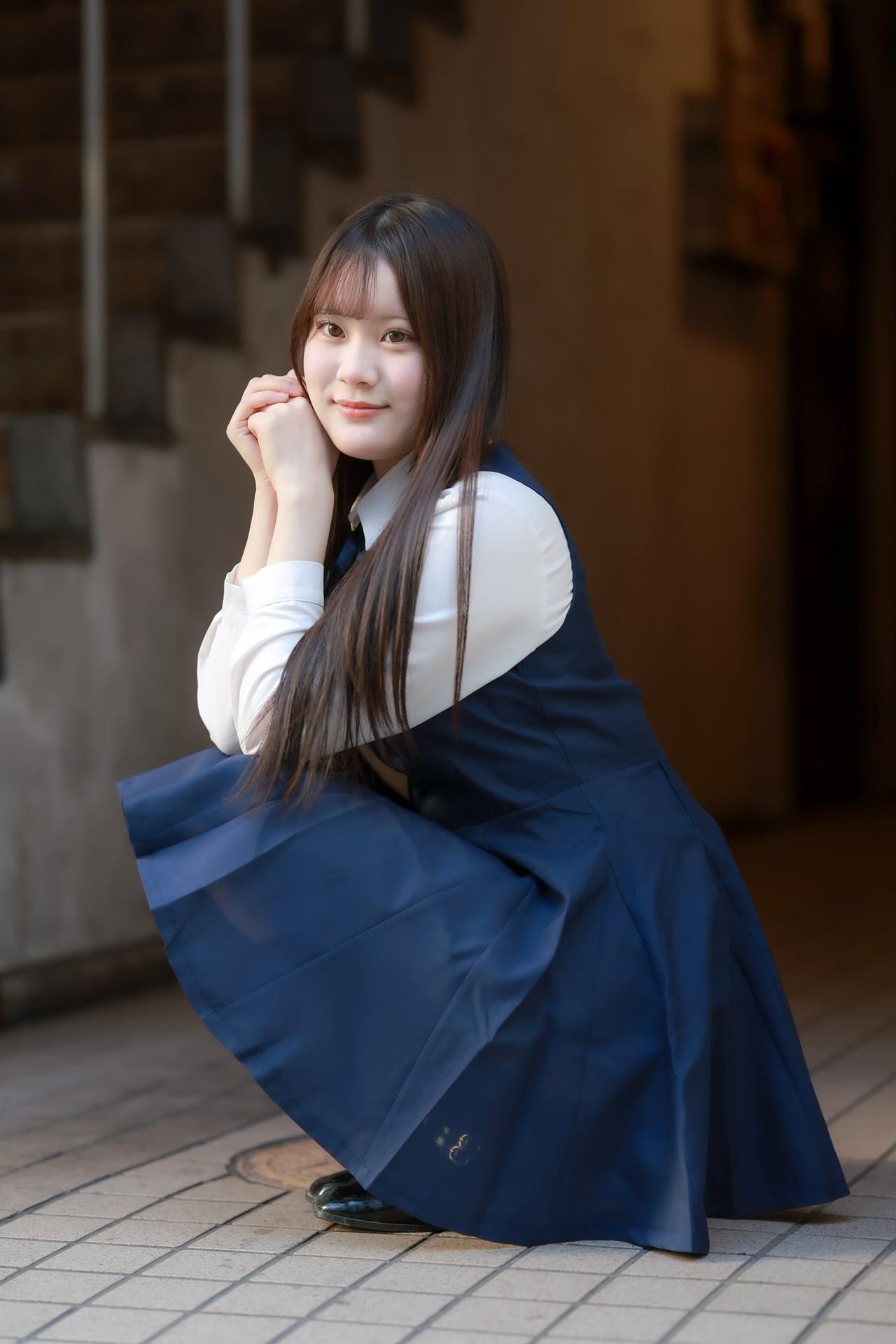 一个穿着校服的女孩坐在台阶上
