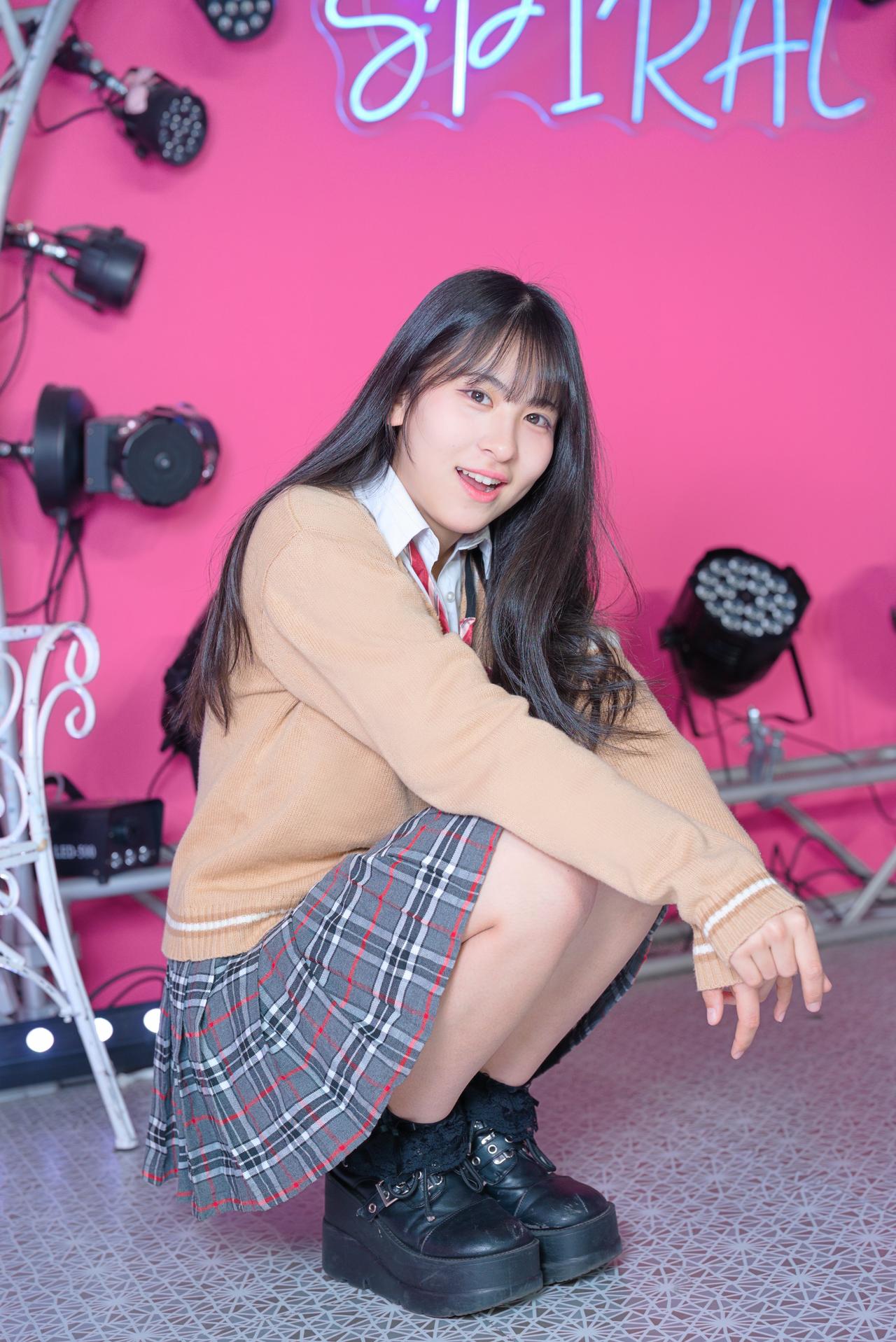 一个穿着校服的女孩坐在台阶上