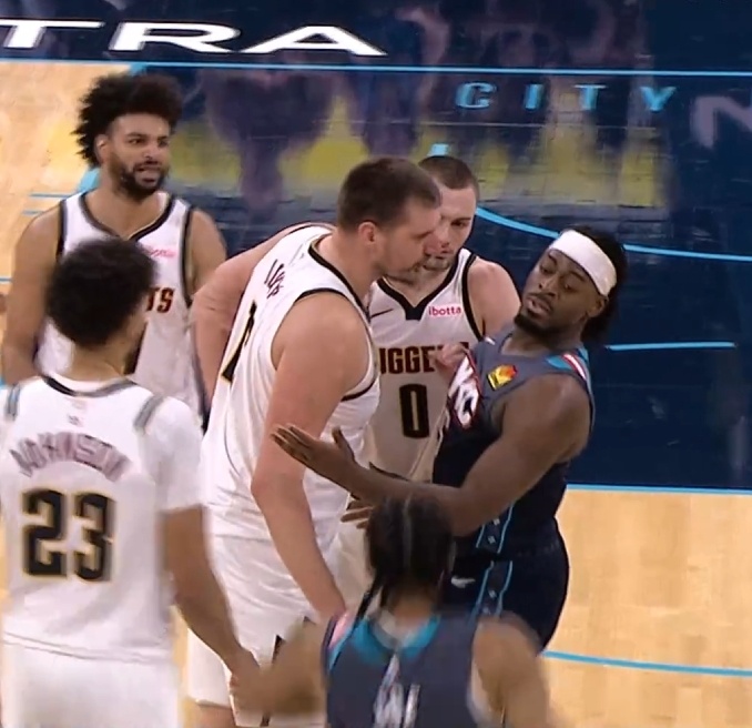 多尔特把约基奇撞翻之后,自己还在这里摊手装无辜………