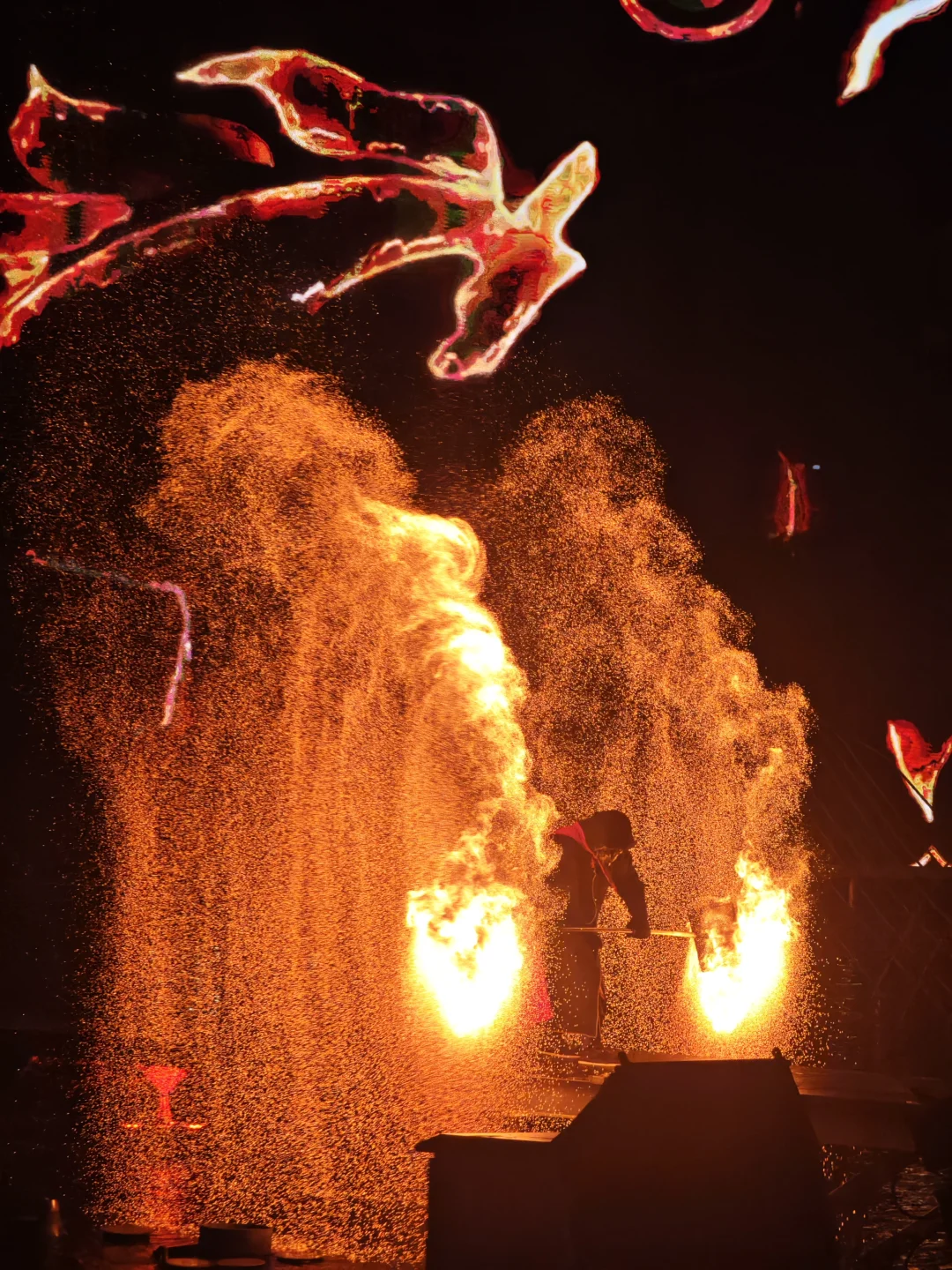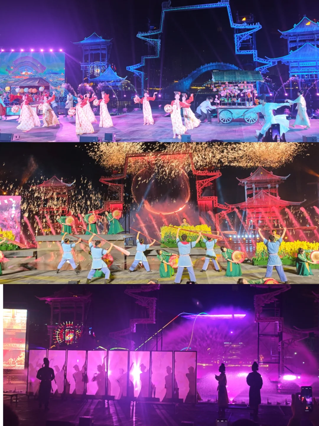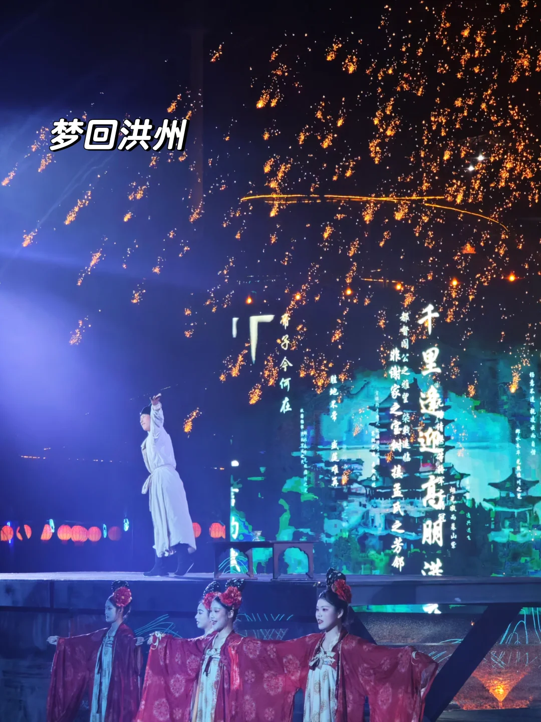 最绝的是《梦回洪州》实景秀🔥 50分钟的演出把南昌从汉代到近代的故事全讲透了,非遗打铁花配上水幕光影,漫天星雨洒下来的那一刻,全场都在哇塞。带爸妈来的,他们看得热血沸腾;带娃来的,是一场生动的历史课。