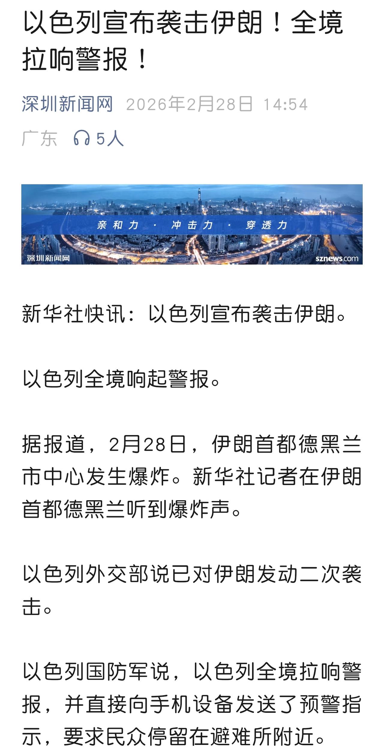 【以(美)伊战争就这样爆发了?】 据有关媒体报道,就在数小时前,以色列已向伊朗发起了两次袭击,伊朗首都德黑兰爆炸声此起彼伏,浓烟滚滚,看来美国下场也进入倒计时了!以(美)伊战争难道真的就这样爆发了? 相信伊朗不是伊拉克,也不会甘于束手就擒,以(美)伊战争是否会打成像美国入侵越南阿富汗或俄乌战争一样旷日持久,还得拭目以待! 距离上一次海湾战争已经30多年了,美国这些年军事实力到底是在增强还是在削弱,是骡子是马拉出来溜溜!不过如果有吃瓜群众期望美国重演上次在海湾战争中的惊艳表现,可能要失望了! 相信在这一次以(美)伊冲突中,各种无人战机会有特别的表现,甚至成为一支可以左右战局的力量。 最后提醒以美一句,肆意妄为,倒行逆施的结果就是多行不义必自毙,众怒难犯,此次中东以(美)伊战争很有可能就是压垮希伯来甚至山姆的最后一根稻草!