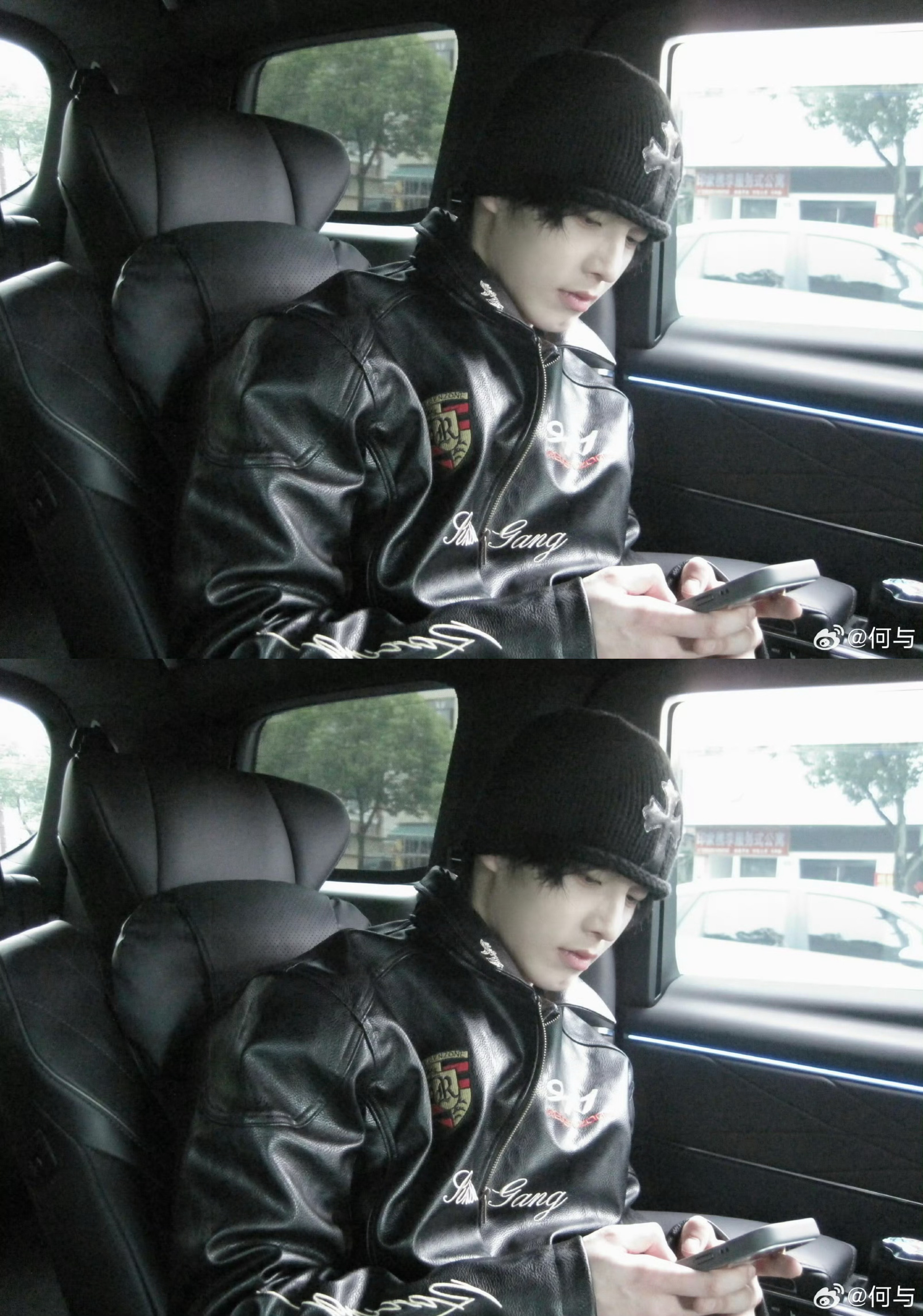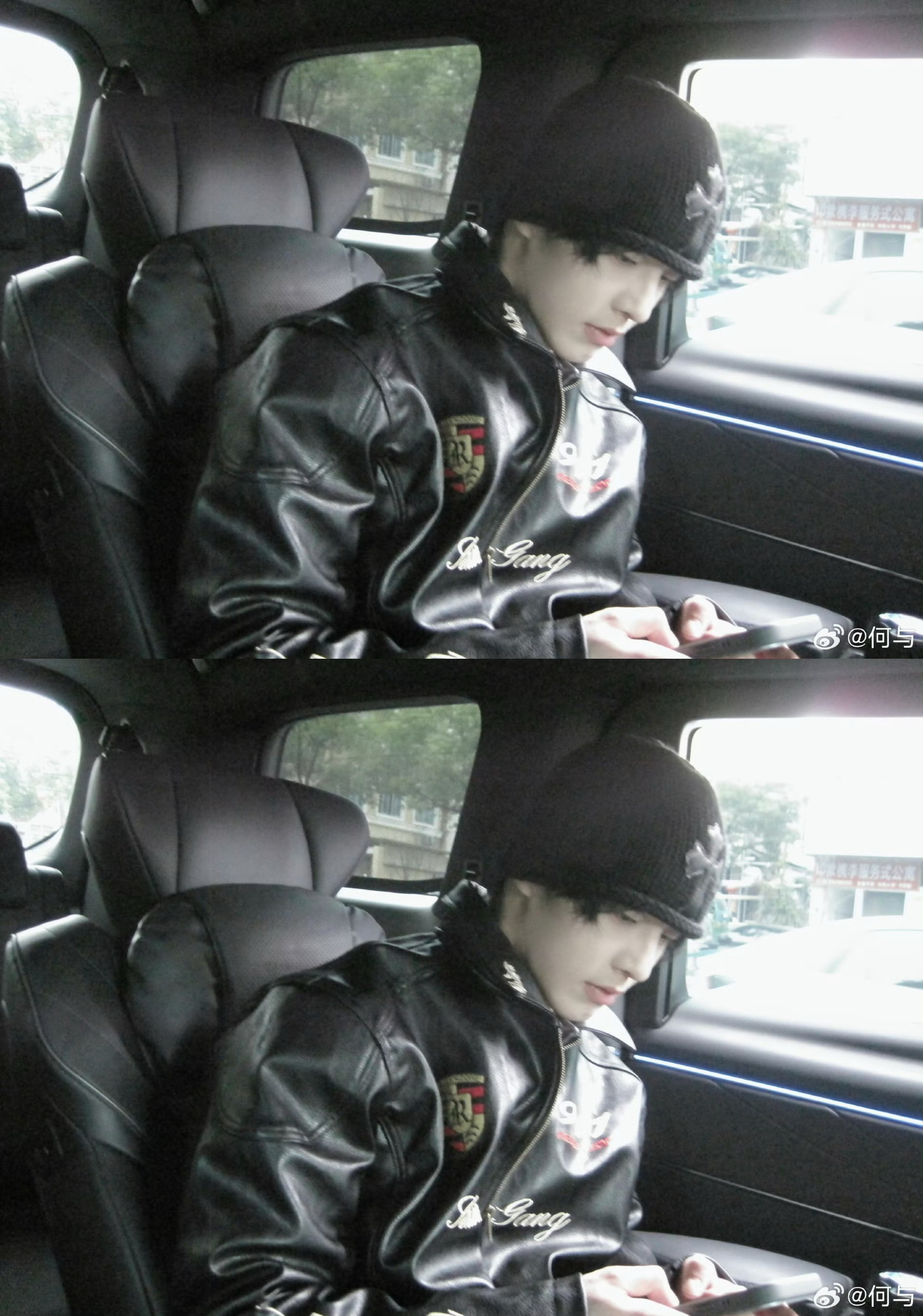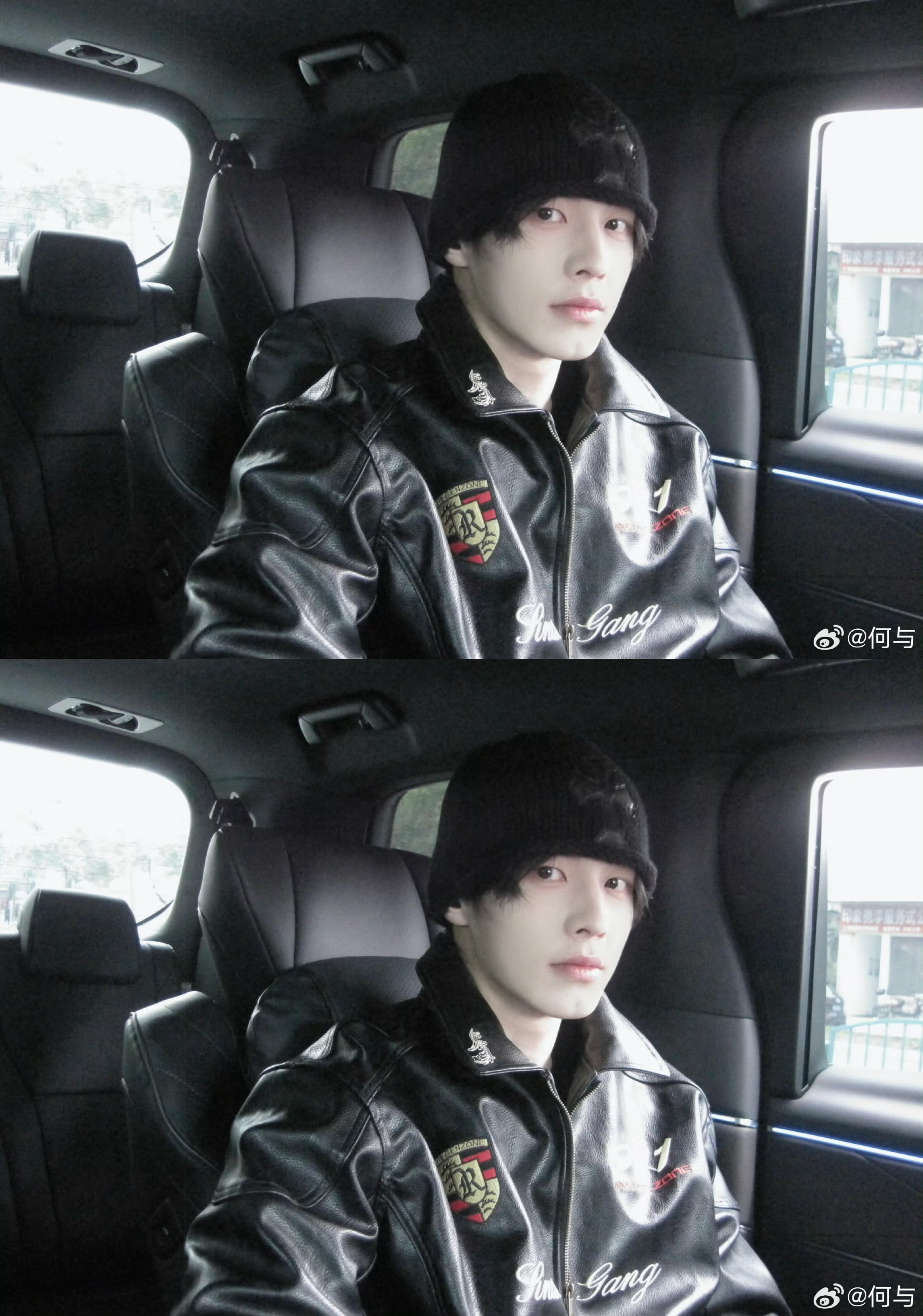 何与车内随拍何与二月最后一天营业,冷帽+黑皮衣look好酷炫