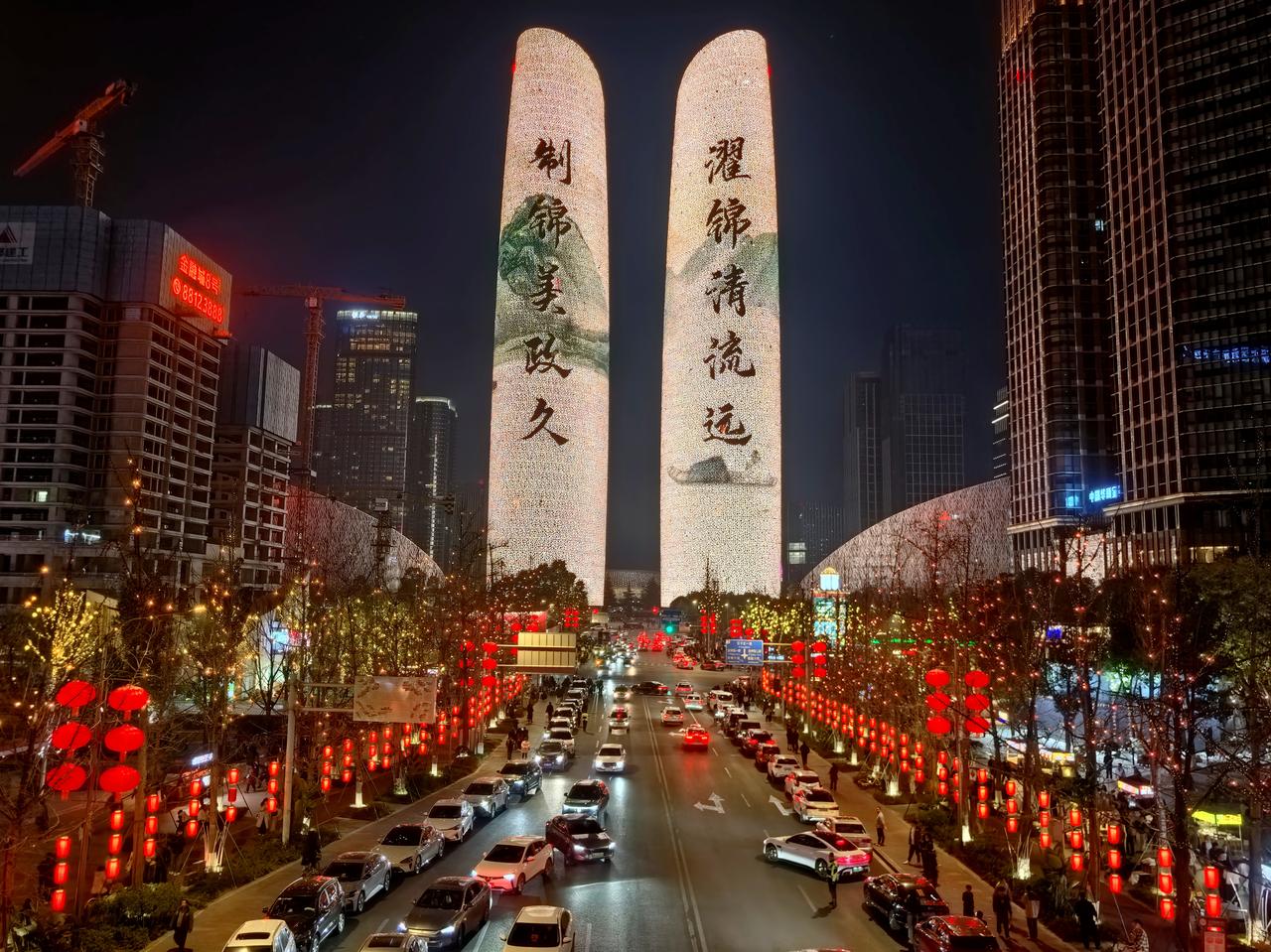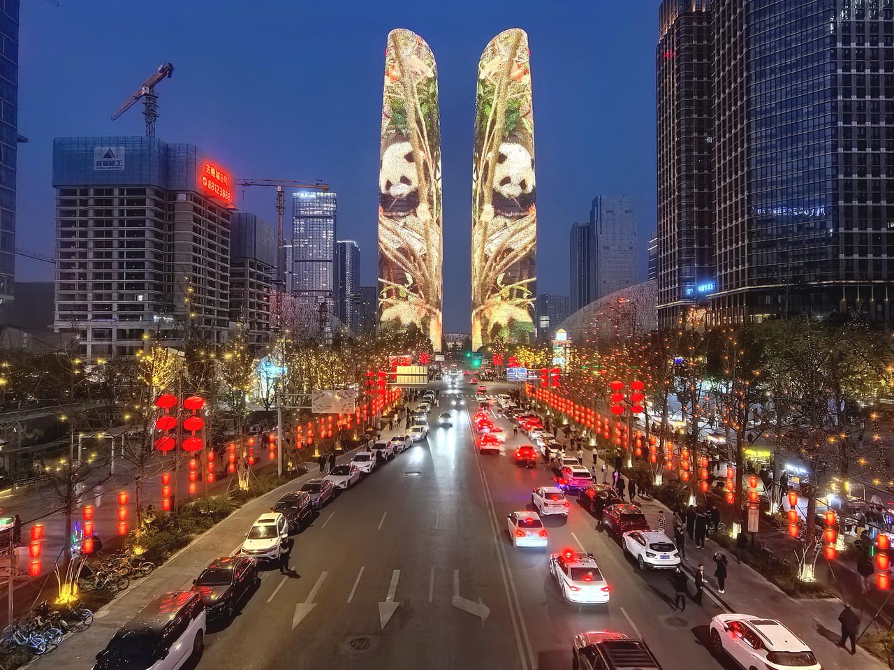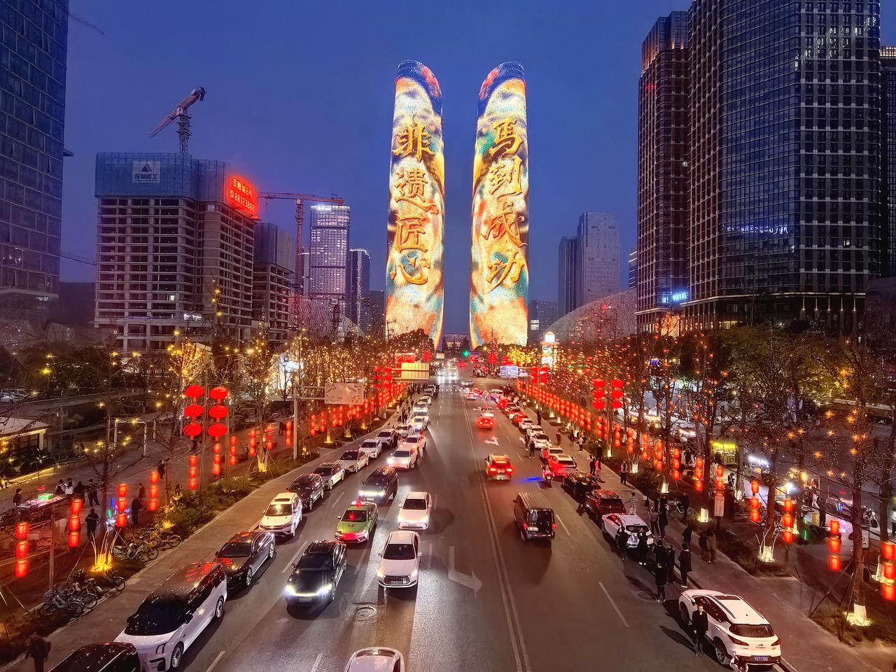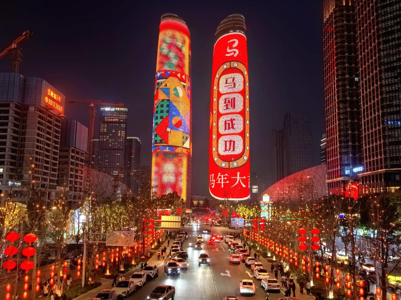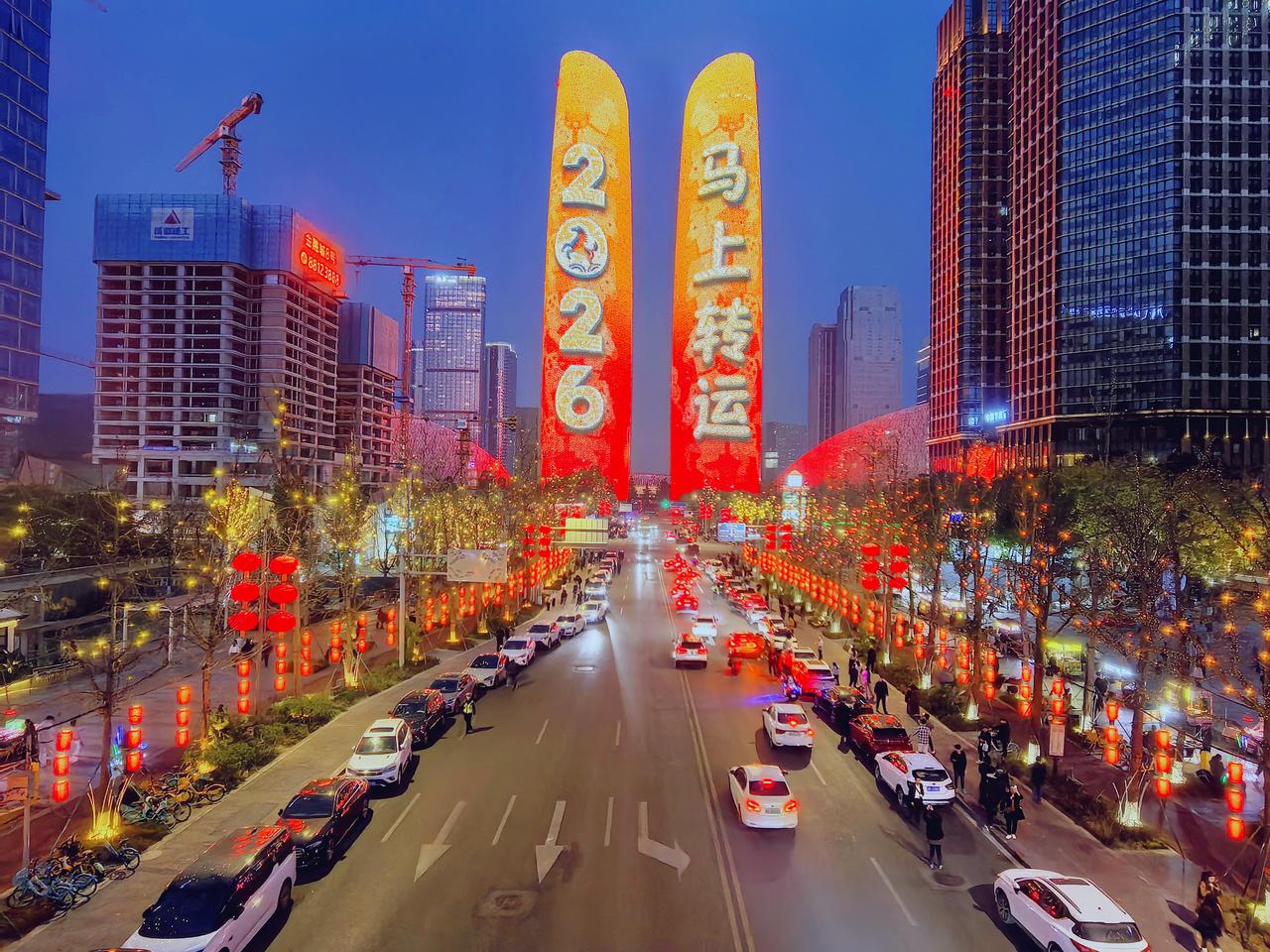 我在成都过大年九︱交子环下,双塔流光映新春。 白日的成都,藏着烟火巷陌的温润与人文景观的厚重,我们循着预定的行程,踏街巷、赏风光,把新春的欢喜一点点收纳进心底。当夕阳渐渐沉落,暮色为这座城市披上一层温柔的纱,晚风携着初春的微凉拂面而来,我们便循着心底的期待,奔赴交子大道——赴一场属于成都春节的光影之约,去欣赏一场独属于成都的交子双塔灯光秀。 春节的交子大道,早已被浓浓的年味儿所包裹。沿街的红灯笼次第亮起,与两侧楼宇的灯光交相辉映,行人步履从容,或举家相伴,或好友同游,脸上都漾着新春的笑意,低声的谈笑与轻柔的晚风交织,晕开最动人的人间烟火。我们循着人流缓缓前行,不远处,那座被誉为“成都最高颜值人行天桥”的交子之环,已然亮起暖橙色的光影,流线型的钢结构在暮色中舒展身姿,像一枚环形的星辰,将交子大道的繁华与浪漫轻轻环抱。它作为五岔子大桥的姊妹作品,内径九十米、外径一百一十米的环形轮廓,既有工业风的极简利落,又藏着光影交织的温柔,站在桥下仰望,竟分不清是桥映着暮色,还是暮色衬着桥影,随手一拍,便是自带氛围感的新春大片。 沿着平缓的阶梯登上交子之环,视野瞬间变得开阔。晚风轻轻吹过,拂去白日游览的疲惫,也吹散了心底的浮躁。脚下的桥面铺着温润的材质,两侧的护栏缀着细碎的灯光,漫步其间,仿佛置身于空中光影长廊。抬眼望去,不远处的天府双塔巍然矗立,两座两百一十八米高的楼宇,通体被LED灯带包裹,5.2万㎡的曲面屏在暮色中渐渐苏醒,如同两块巨大的流光画布,静静等候着一场视觉盛宴的开启。此时的天色尚未完全暗透,蓝调的暮色与双塔的轮廓相映,交子大道上车水马龙,远处的楼宇灯火点点,近处的交子之环光影流转,古今交融的浪漫,在这一刻展现得淋漓尽致。 正当我们驻足凝望,双塔的灯光骤然亮起,一场属于马年春节的灯光秀,在万众期待中拉开了序幕。没有多余的铺垫,光影瞬间铺满双塔的每一寸墙面,从“天马行空·耀古烁今”到“非遗匠心·马到成功”,从“锦绣未来·策马奔腾”到“龙马精神”,四个主题篇章循序渐进,用光影编织出一幅兼具传统底蕴与现代活力的新春画卷。起初,一枚千年交子在数据星河中缓缓流转,历史的印记与现代的科技碰撞,完成了一场跨越时空的共振,仿佛在诉说着成都千年文脉的传承与延续;紧接着,蜀绣的青绿山水、漆艺的芙蓉繁花次第铺展,一匹剪纸骏马踏着流光,在纸鸢的陪伴下奋力奔跑,将四川非遗的匠心与雅致,藏进每一束光影之中;随后,锦鲤跃出、祥云缭绕,金色的粒子凝结成昂首的骏马,与破空而出的剪纸祥龙相映,“龙马精神”的磅礴气势,在双塔之上徐徐展开,既呼应了马年新春的吉祥寓意,也藏着成都人奋进向上的模样。 站在交子之环上,我们沉浸式感受着这场光影盛宴。灯光的明暗交错间,双塔时而化作红色的缎布,承载着新春的喜庆;时而化作科技感十足的巨幕,流淌着未来的憧憬;时而又浮现出巨型春联、十二生肖、数字熊猫的身影,把“我爱成都”的深情与“年年有鱼”的祝福,一一呈现在夜空之下。光影流转的节奏,与晚风的轻吟、行人的赞叹相融,偶尔有灯光映在行人的脸上,眉眼间的欢喜与震撼,便是这场灯光秀最动人的注脚。有人举着相机,定格下双塔流光的瞬间;有人牵着孩子的手,轻声讲解着光影里的非遗故事;还有人依偎在身旁,在璀璨的灯光下诉说着新春的期许,每一个画面,都藏着春节最温暖的模样。 白日的游览,是对成都烟火与人文的探寻;而夜晚的交子之环与双塔灯光秀,则是对成都浪漫与活力的邂逅。这场灯光秀,不仅是一场视觉的盛宴,更是一次文化的洗礼,它将交子文化、四川非遗与马年新春的美好寓意相融,用科技的力量,演绎着传统与现代的碰撞,也诉说着这座城市对新春的期许与祝福。 夜色渐深,灯光秀渐渐落幕,但双塔的光影依旧在夜空中闪烁,交子之环的暖光依旧温柔,交子大道的烟火依旧热闹。我们缓缓走下交子之环,晚风依旧轻柔,心底却满是震撼与欢喜。这场傍晚的光影之约,不仅为我们的成都春节之旅增添了浓墨重彩的一笔,更让我们读懂了成都的浪漫——它藏在白日的烟火巷陌里,藏在夜晚的流光溢彩中,藏在每一个新春的欢喜瞬间里。而交子之环下的这场灯光秀,便是成都送给我们最珍贵的新春礼物,让我们在流光溢彩中,读懂这座城市的温柔与热爱,也留住了这个春节最难忘的美好回忆。年味成都 我在成都过大年 成都双塔灯光秀 随手拍交子大道灯光秀 成都春节夜景 记录我的2026 天南地北大拜年