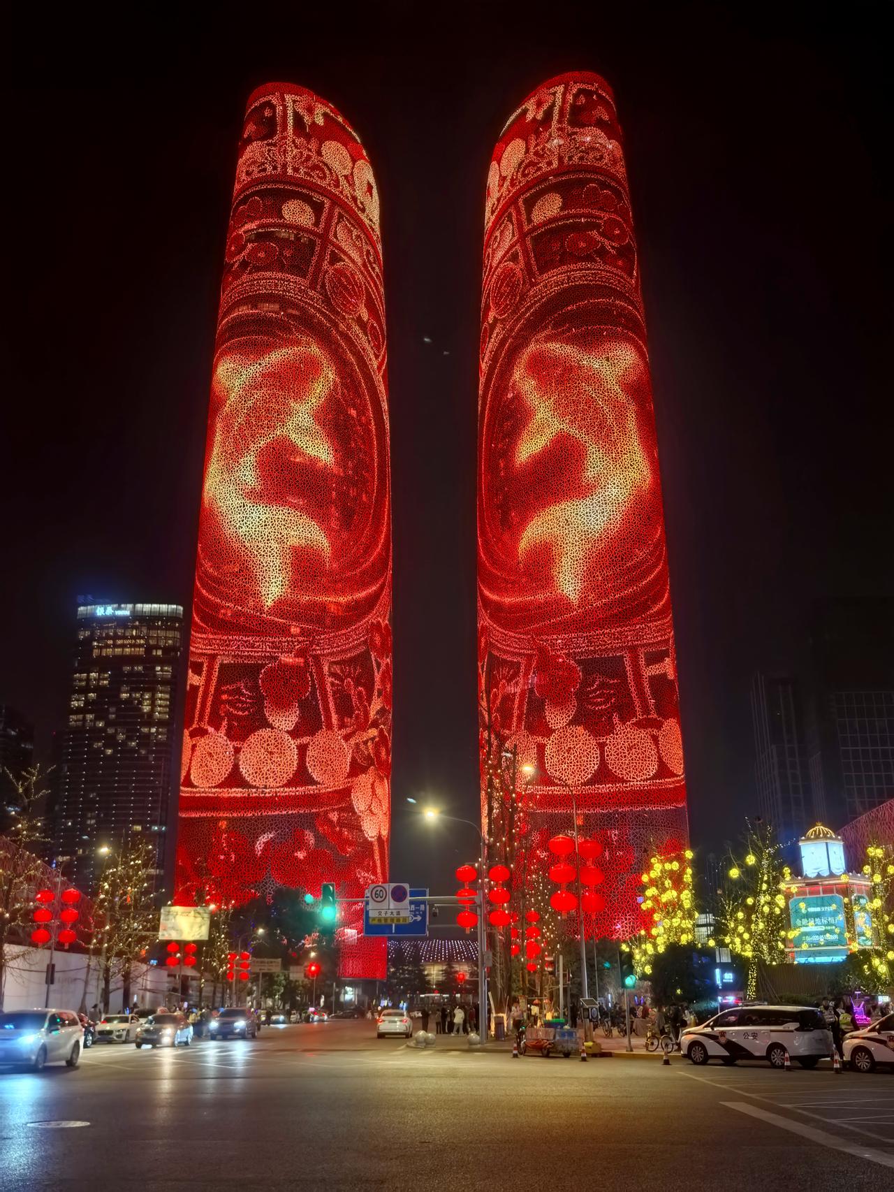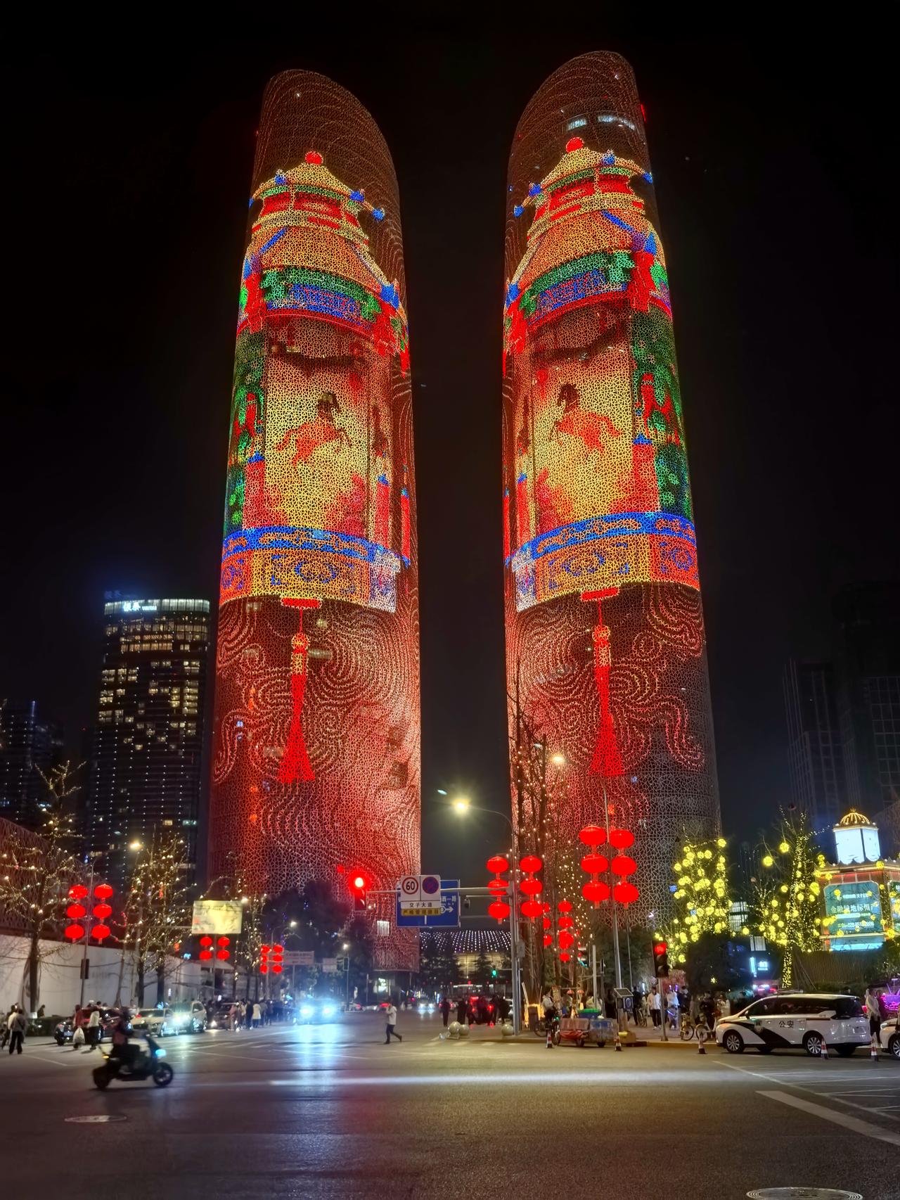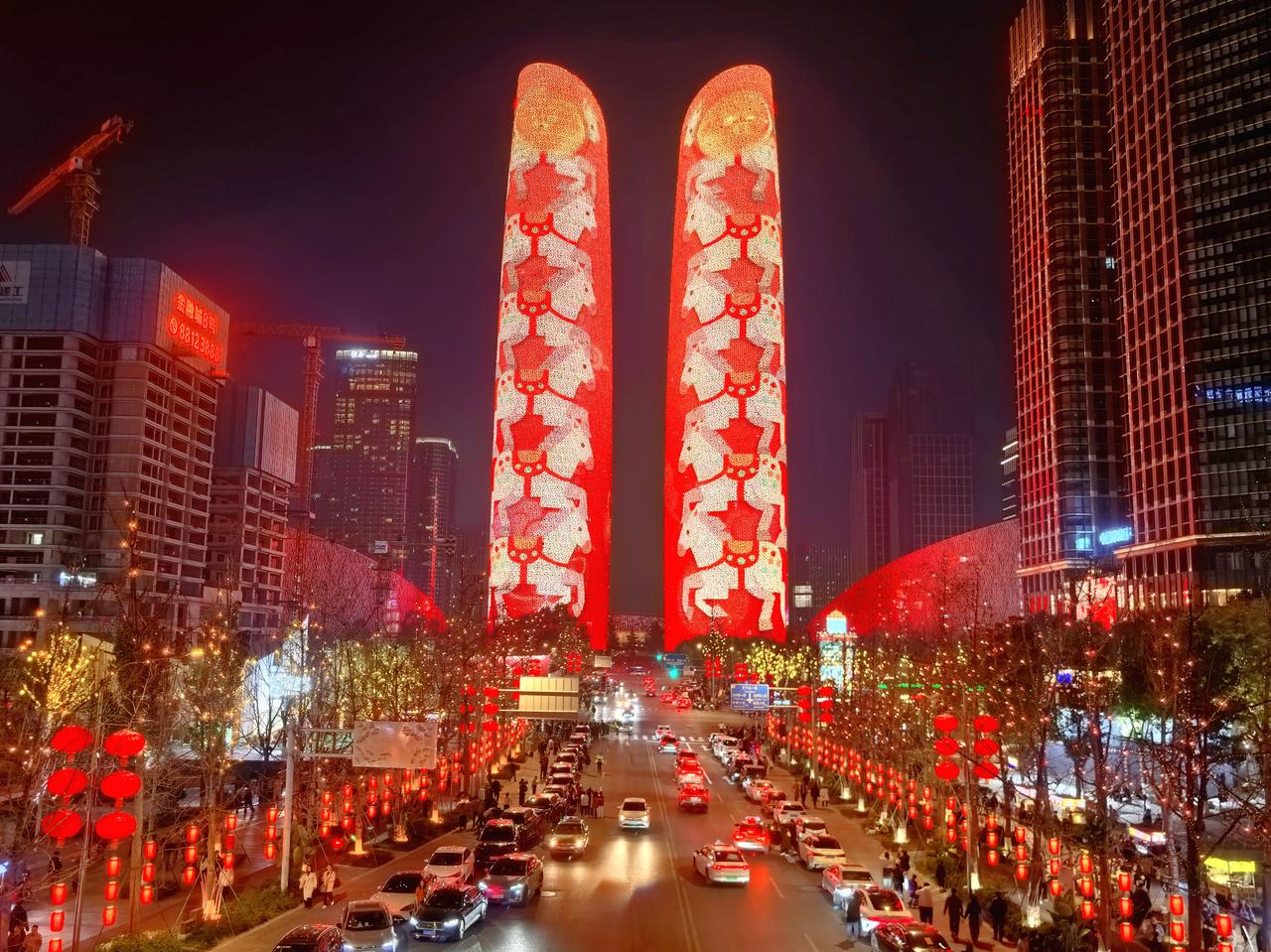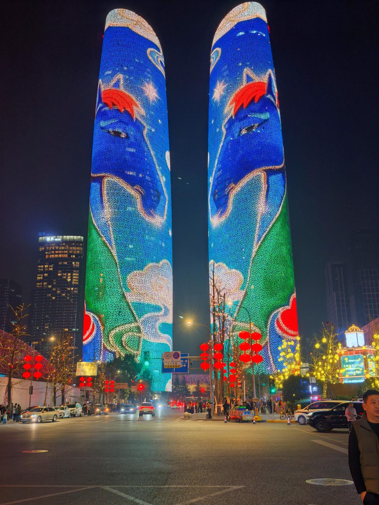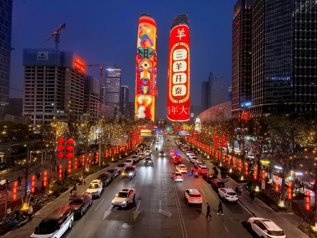 我在成都过大年九︱交子环下,双塔流光映新春。 白日的成都,藏着烟火巷陌的温润与人文景观的厚重,我们循着预定的行程,踏街巷、赏风光,把新春的欢喜一点点收纳进心底。当夕阳渐渐沉落,暮色为这座城市披上一层温柔的纱,晚风携着初春的微凉拂面而来,我们便循着心底的期待,奔赴交子大道——赴一场属于成都春节的光影之约,去欣赏一场独属于成都的交子双塔灯光秀。 春节的交子大道,早已被浓浓的年味儿所包裹。沿街的红灯笼次第亮起,与两侧楼宇的灯光交相辉映,行人步履从容,或举家相伴,或好友同游,脸上都漾着新春的笑意,低声的谈笑与轻柔的晚风交织,晕开最动人的人间烟火。我们循着人流缓缓前行,不远处,那座被誉为“成都最高颜值人行天桥”的交子之环,已然亮起暖橙色的光影,流线型的钢结构在暮色中舒展身姿,像一枚环形的星辰,将交子大道的繁华与浪漫轻轻环抱。它作为五岔子大桥的姊妹作品,内径九十米、外径一百一十米的环形轮廓,既有工业风的极简利落,又藏着光影交织的温柔,站在桥下仰望,竟分不清是桥映着暮色,还是暮色衬着桥影,随手一拍,便是自带氛围感的新春大片。 沿着平缓的阶梯登上交子之环,视野瞬间变得开阔。晚风轻轻吹过,拂去白日游览的疲惫,也吹散了心底的浮躁。脚下的桥面铺着温润的材质,两侧的护栏缀着细碎的灯光,漫步其间,仿佛置身于空中光影长廊。抬眼望去,不远处的天府双塔巍然矗立,两座两百一十八米高的楼宇,通体被LED灯带包裹,5.2万㎡的曲面屏在暮色中渐渐苏醒,如同两块巨大的流光画布,静静等候着一场视觉盛宴的开启。此时的天色尚未完全暗透,蓝调的暮色与双塔的轮廓相映,交子大道上车水马龙,远处的楼宇灯火点点,近处的交子之环光影流转,古今交融的浪漫,在这一刻展现得淋漓尽致。 正当我们驻足凝望,双塔的灯光骤然亮起,一场属于马年春节的灯光秀,在万众期待中拉开了序幕。没有多余的铺垫,光影瞬间铺满双塔的每一寸墙面,从“天马行空·耀古烁今”到“非遗匠心·马到成功”,从“锦绣未来·策马奔腾”到“龙马精神”,四个主题篇章循序渐进,用光影编织出一幅兼具传统底蕴与现代活力的新春画卷。起初,一枚千年交子在数据星河中缓缓流转,历史的印记与现代的科技碰撞,完成了一场跨越时空的共振,仿佛在诉说着成都千年文脉的传承与延续;紧接着,蜀绣的青绿山水、漆艺的芙蓉繁花次第铺展,一匹剪纸骏马踏着流光,在纸鸢的陪伴下奋力奔跑,将四川非遗的匠心与雅致,藏进每一束光影之中;随后,锦鲤跃出、祥云缭绕,金色的粒子凝结成昂首的骏马,与破空而出的剪纸祥龙相映,“龙马精神”的磅礴气势,在双塔之上徐徐展开,既呼应了马年新春的吉祥寓意,也藏着成都人奋进向上的模样。 站在交子之环上,我们沉浸式感受着这场光影盛宴。灯光的明暗交错间,双塔时而化作红色的缎布,承载着新春的喜庆;时而化作科技感十足的巨幕,流淌着未来的憧憬;时而又浮现出巨型春联、十二生肖、数字熊猫的身影,把“我爱成都”的深情与“年年有鱼”的祝福,一一呈现在夜空之下。光影流转的节奏,与晚风的轻吟、行人的赞叹相融,偶尔有灯光映在行人的脸上,眉眼间的欢喜与震撼,便是这场灯光秀最动人的注脚。有人举着相机,定格下双塔流光的瞬间;有人牵着孩子的手,轻声讲解着光影里的非遗故事;还有人依偎在身旁,在璀璨的灯光下诉说着新春的期许,每一个画面,都藏着春节最温暖的模样。 白日的游览,是对成都烟火与人文的探寻;而夜晚的交子之环与双塔灯光秀,则是对成都浪漫与活力的邂逅。这场灯光秀,不仅是一场视觉的盛宴,更是一次文化的洗礼,它将交子文化、四川非遗与马年新春的美好寓意相融,用科技的力量,演绎着传统与现代的碰撞,也诉说着这座城市对新春的期许与祝福。 夜色渐深,灯光秀渐渐落幕,但双塔的光影依旧在夜空中闪烁,交子之环的暖光依旧温柔,交子大道的烟火依旧热闹。我们缓缓走下交子之环,晚风依旧轻柔,心底却满是震撼与欢喜。这场傍晚的光影之约,不仅为我们的成都春节之旅增添了浓墨重彩的一笔,更让我们读懂了成都的浪漫——它藏在白日的烟火巷陌里,藏在夜晚的流光溢彩中,藏在每一个新春的欢喜瞬间里。而交子之环下的这场灯光秀,便是成都送给我们最珍贵的新春礼物,让我们在流光溢彩中,读懂这座城市的温柔与热爱,也留住了这个春节最难忘的美好回忆。年味成都 我在成都过大年 成都双塔灯光秀 随手拍交子大道灯光秀 成都春节夜景 记录我的2026 天南地北大拜年