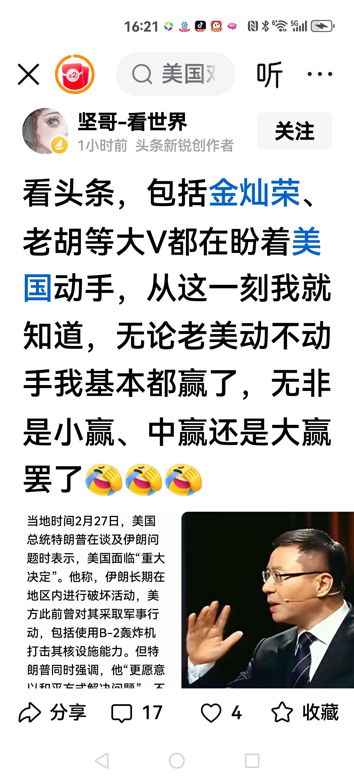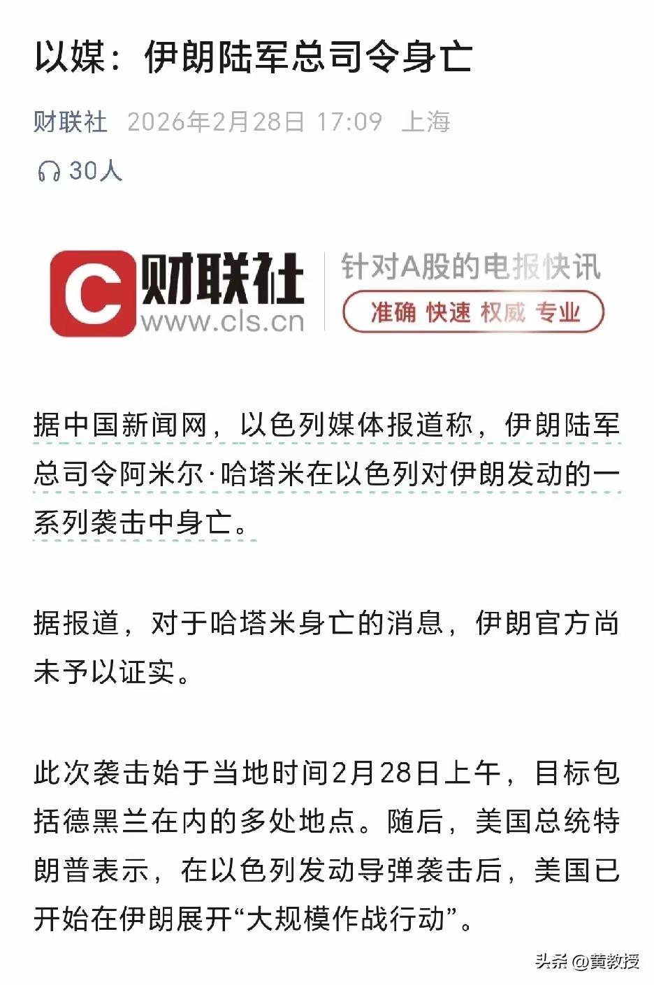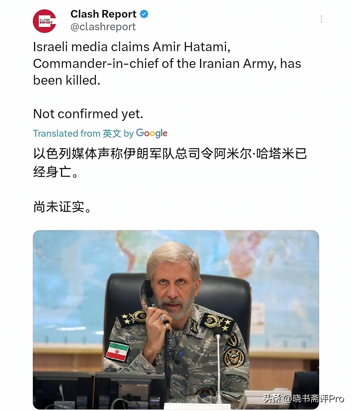 【开打了】 第一轮开打,伊朗陆军总司令身亡。 目前伊朗还没有认可。 还有人说伊朗反击相当厉害,四处开花。 美国对伊朗开战 第二轮打击可能会更加猛烈,伊朗能坚持多久?