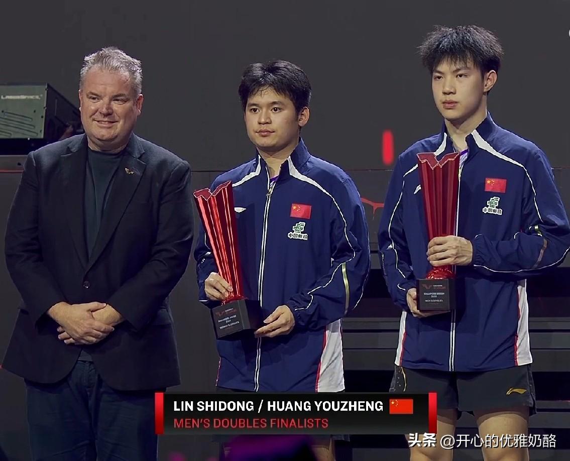 男双颁奖典礼,林诗栋和黄友政不是很开心。 林诗栋和黄友政尽管站到领奖台,但不是去年的最高冠军领奖台。 大满贯打到今天,国乒终于获奖了,有点遗憾是男双亚军。 今天两小只输了比赛不开心,特别是林诗栋下午还打一场单打,消耗了很大体能和心力,晚上比赛又拖延一个多小时,兄弟俩没有开心只有疲惫。 大满贯林诗栋男双亚军,男单八强,也算圆满完成任务。 通过比赛也看到差距,现在的国乒队不再能包揽所有冠军,明天能拿下男单和女单冠军,大满贯就算圆满了。 加油中国队,期待明天的冠军。 图来自网络侵权可删。