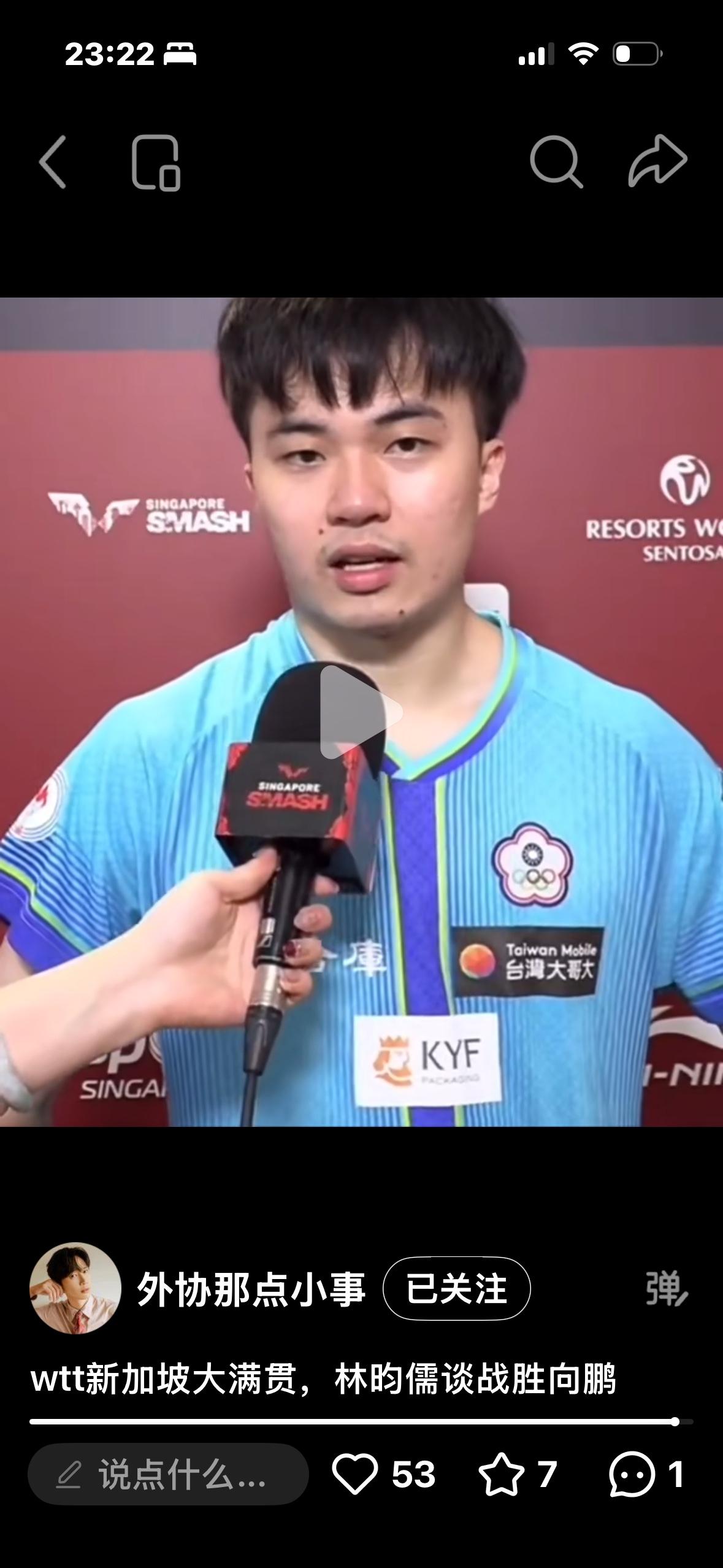 新加坡大满贯林昀儒4:1弗朗西斯卡晋级半决赛,下一场对阵陈垣宇与莫雷加德的胜出者! 2月28日新加坡大满贯男单1/4决赛 林昀儒4:1弗朗西斯卡, 11:7,15:13,11:7,8:11,11:7 林昀儒今年24岁,世界排名第8, 弗朗西斯卡33岁,世界排名第22位,从以往的两个人交手记录来看, 林昀儒对弗朗西斯卡保持 9战皆胜,这次是林昀儒 第十次打败弗朗西斯卡, 这就是球路相克吧! 林昀儒下一场对阵陈垣宇与 莫雷加德的胜出者!