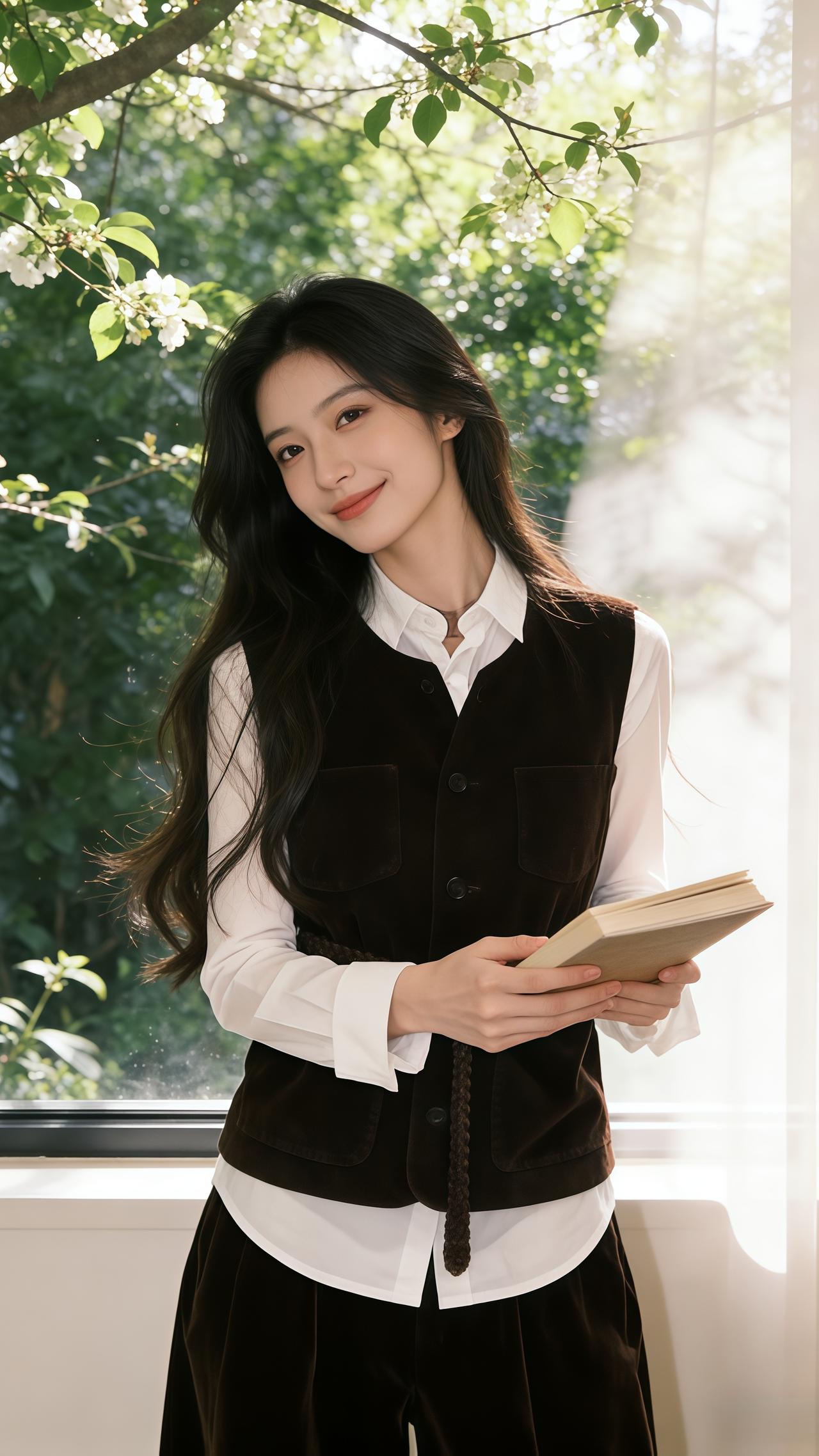 优雅气质,时尚穿搭,自信微笑,都市女性风范。