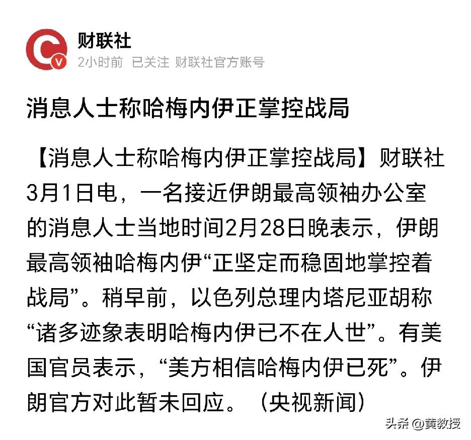 一名接近伊朗最高领袖办公室的消息人士当地时间2月28日晚表示,伊朗最高领袖哈梅内伊“正坚定而稳固地掌控着战局”。