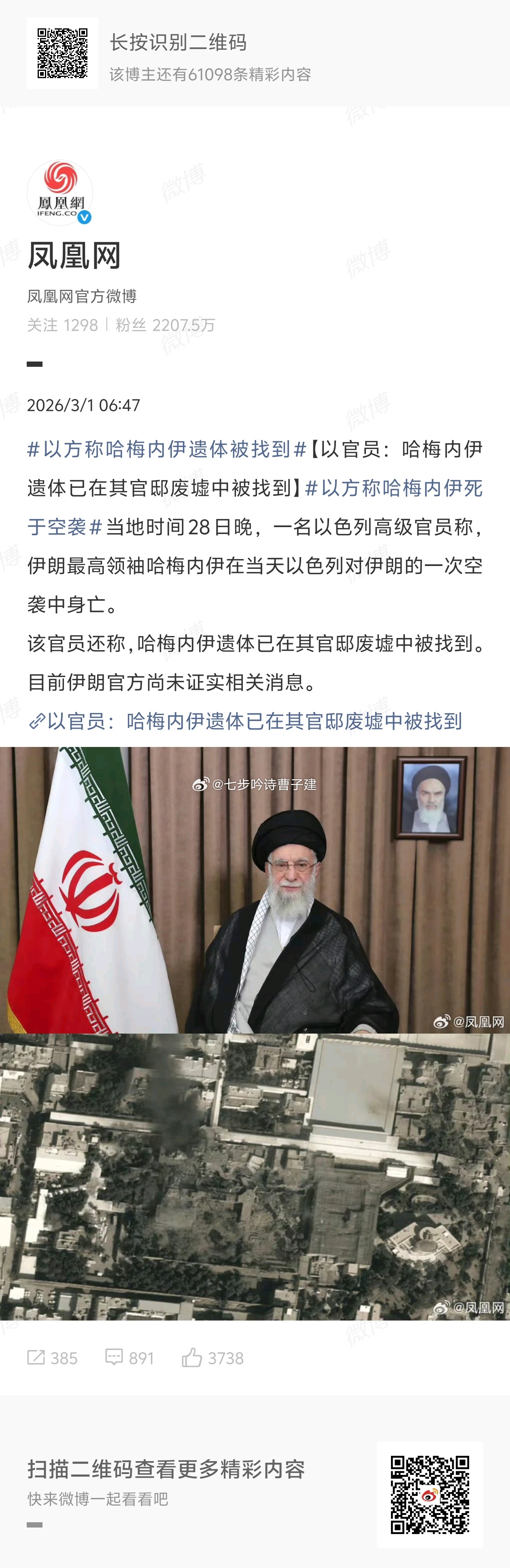 以方称哈梅内伊遗体被找到