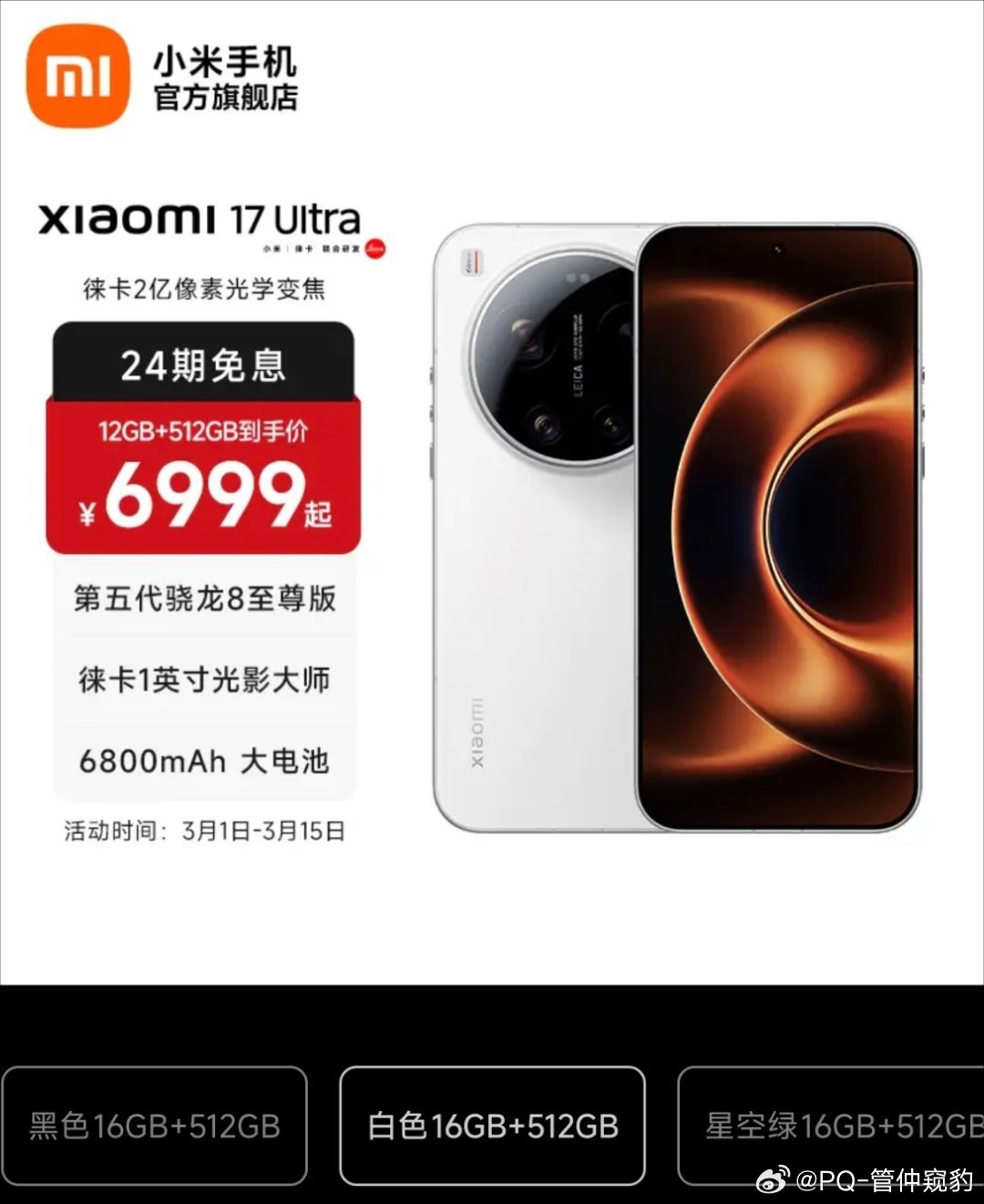小米17Ultra国际售价超1.2万小米17Ultra两个版本叫XIAOMI 17Ultra,16G+512G售1499欧元≈12000元叫LEITZ Phone,16G+1T售1999欧≈16000元