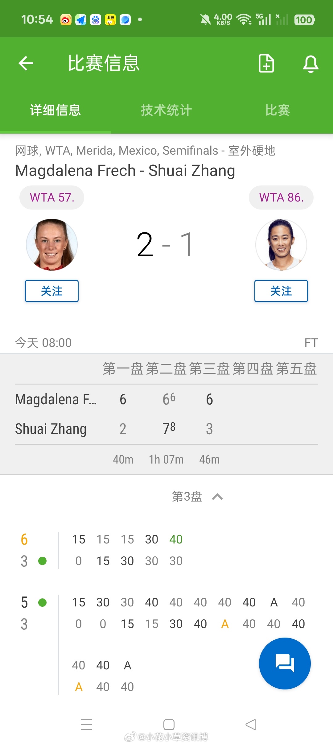 小花小草资讯 【 🇲🇽梅里达WTA500】女单半决赛🇨🇳资格赛突围的2-67-6(6)3-6惜败🇵🇱球员弗雷西无缘决赛张帅本周收获220分195+25即时排名61(+25)