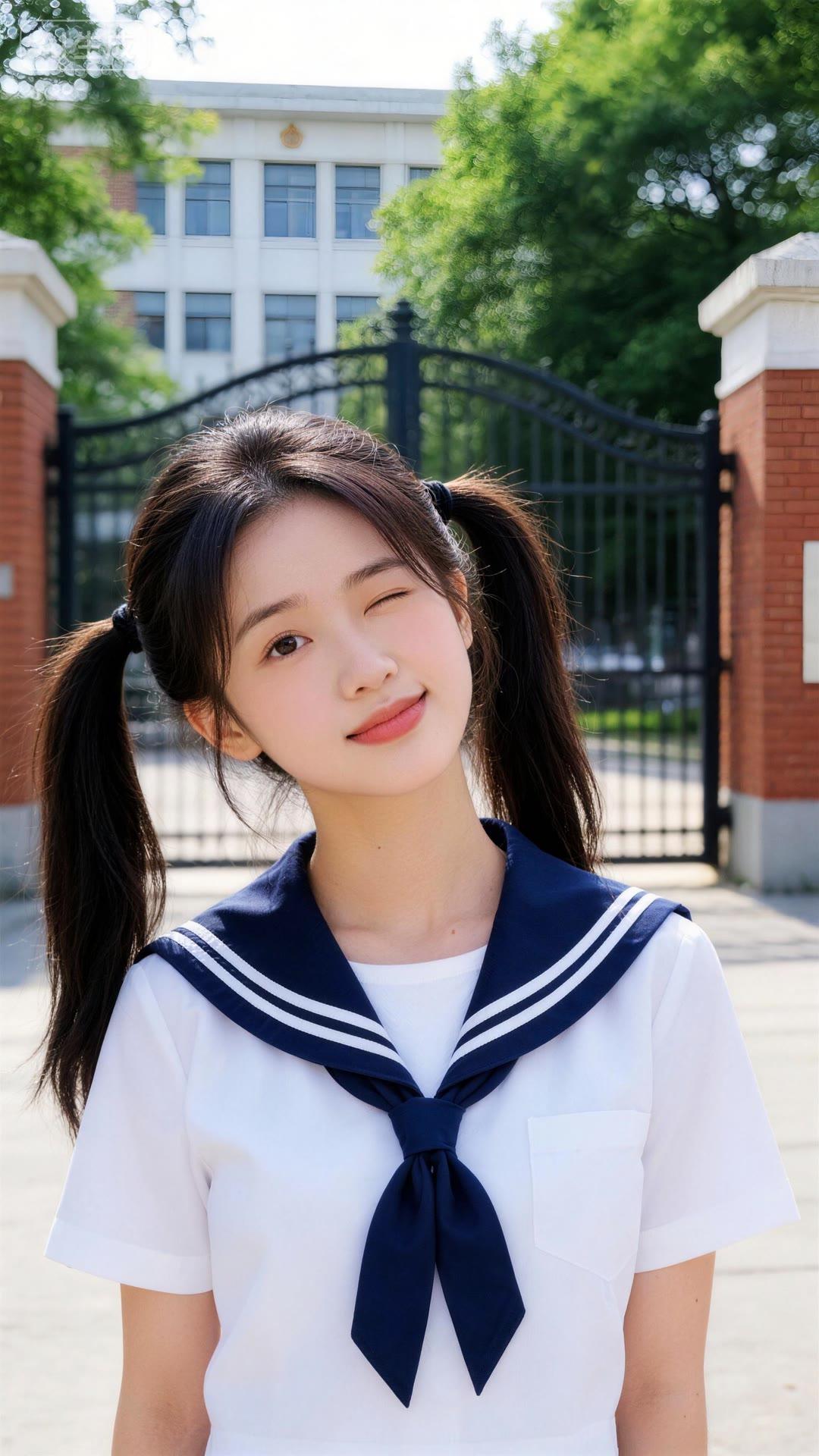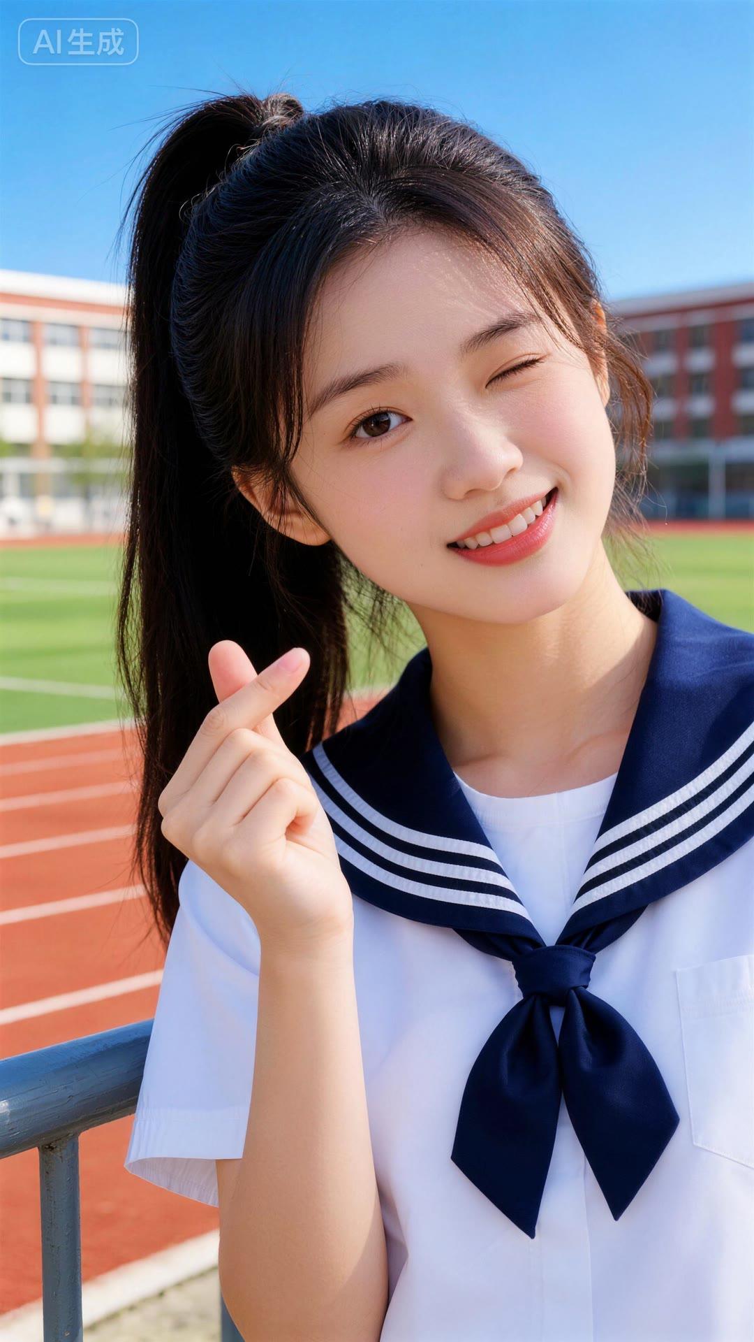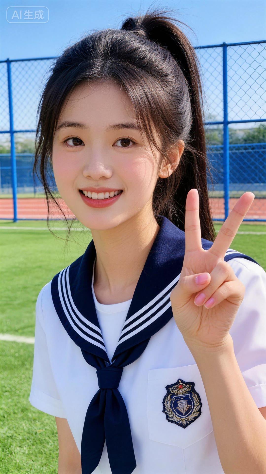 阳光明媚的午后,甜美少女在绿意盎然的背景下微笑,青春洋溢!🌞💐😊