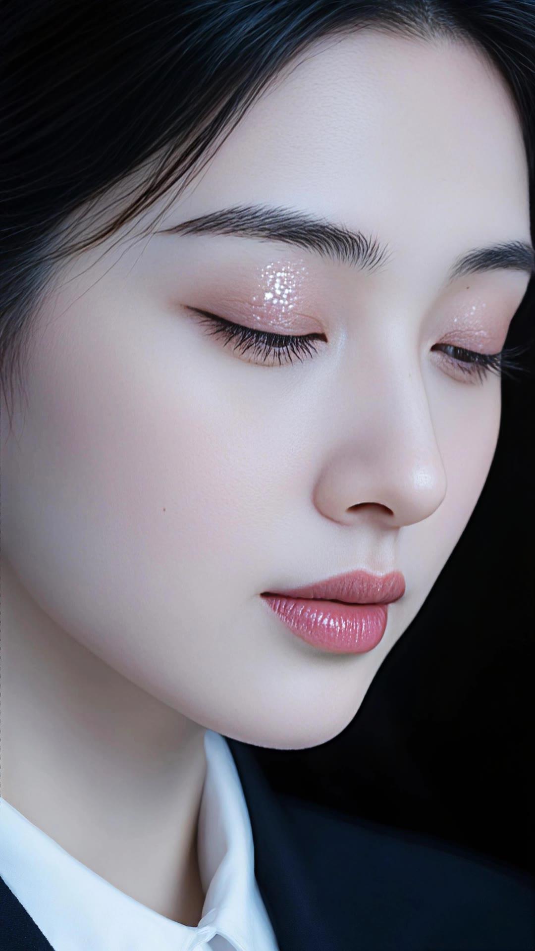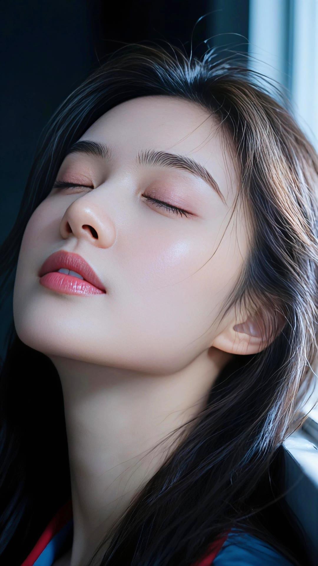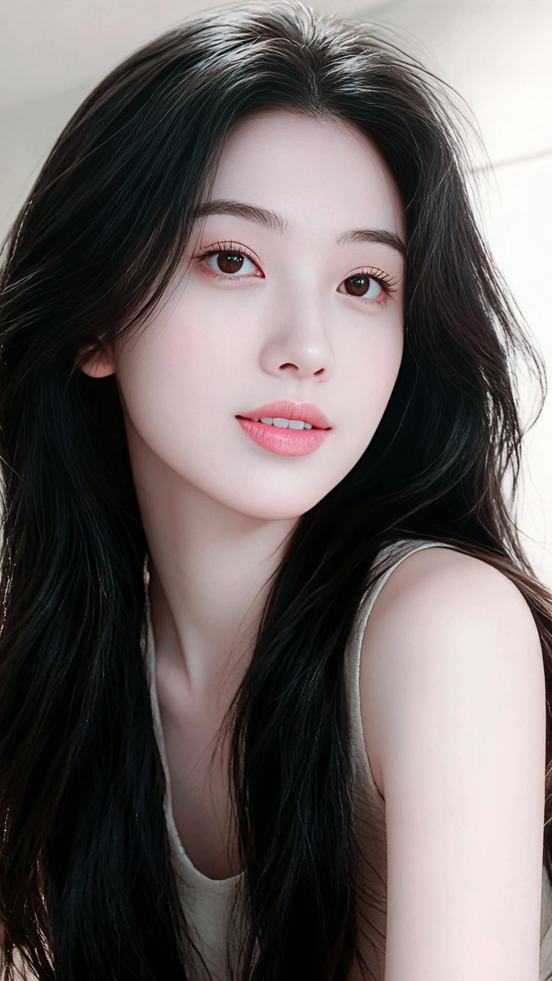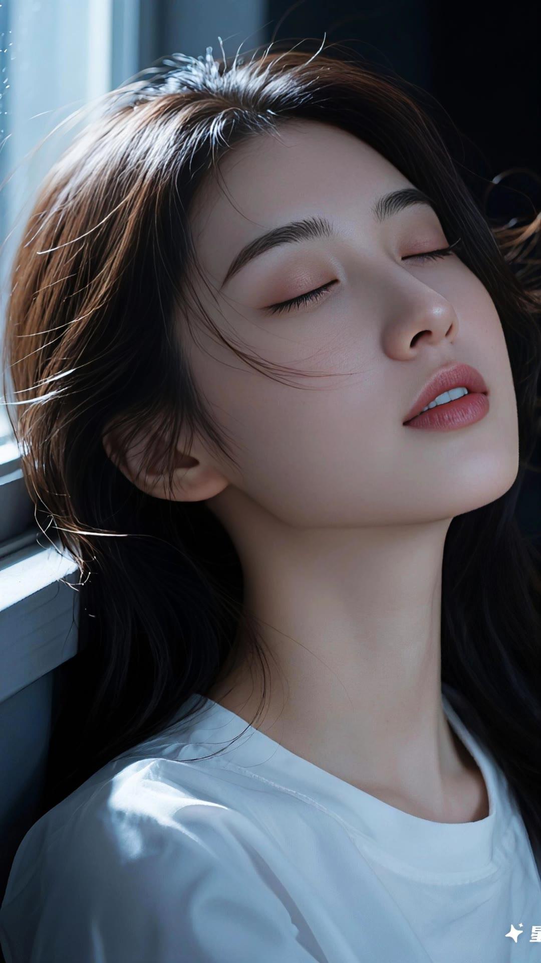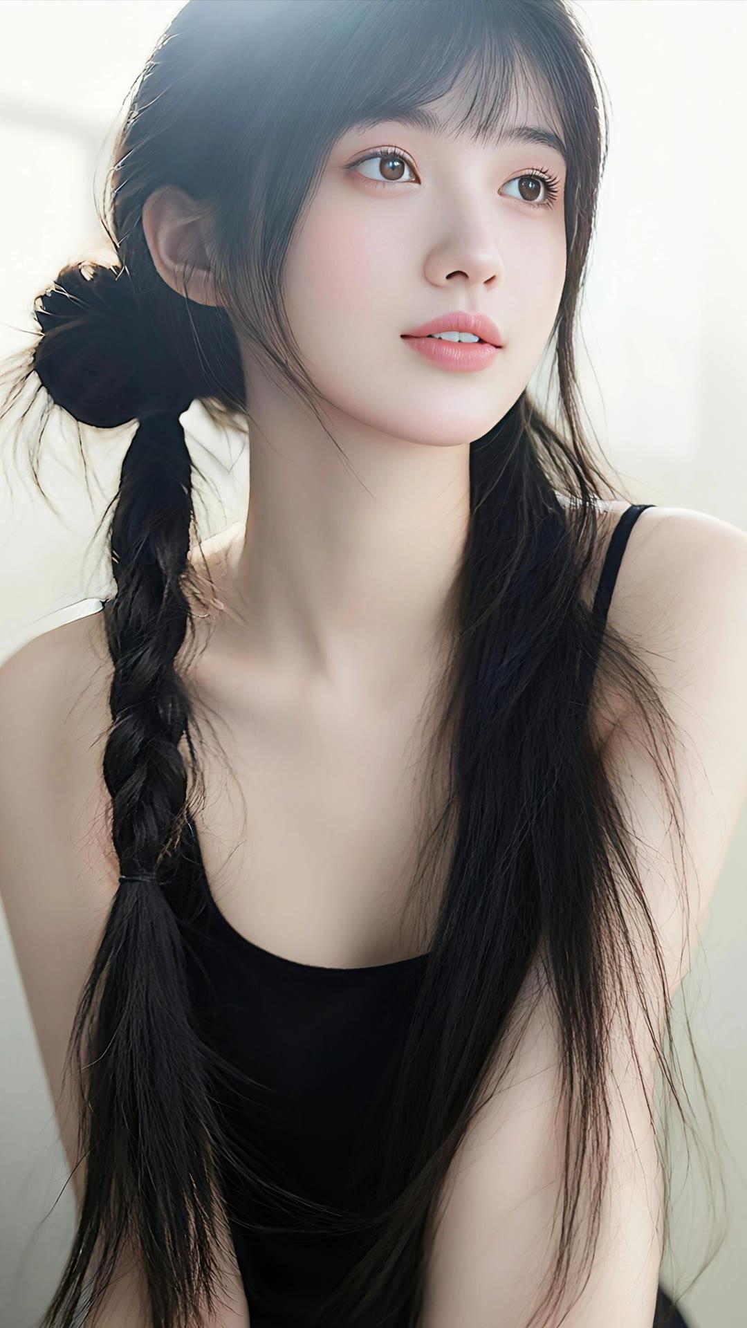 温柔的黑发少女,沉思的瞬间,静谧而美丽。