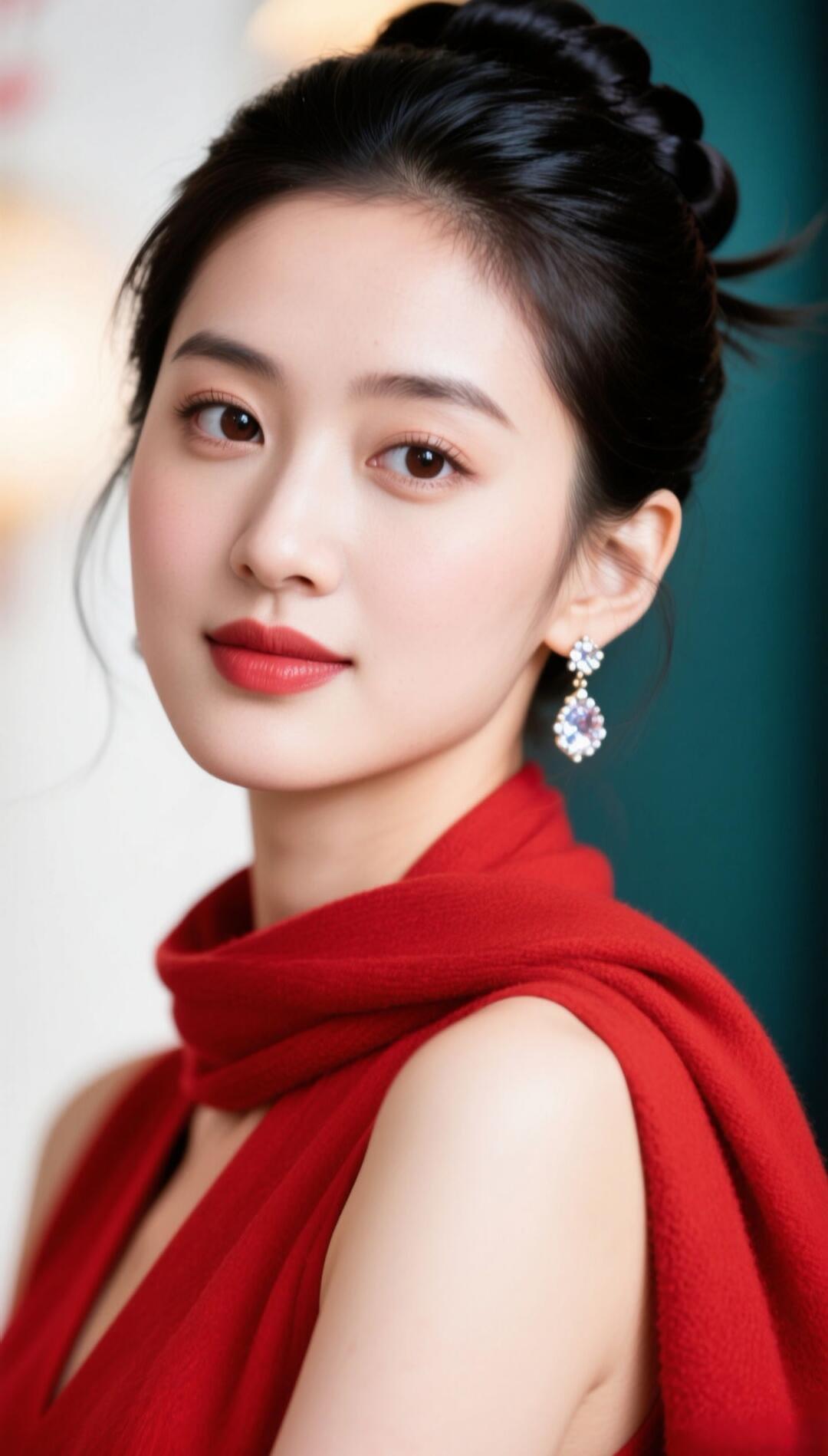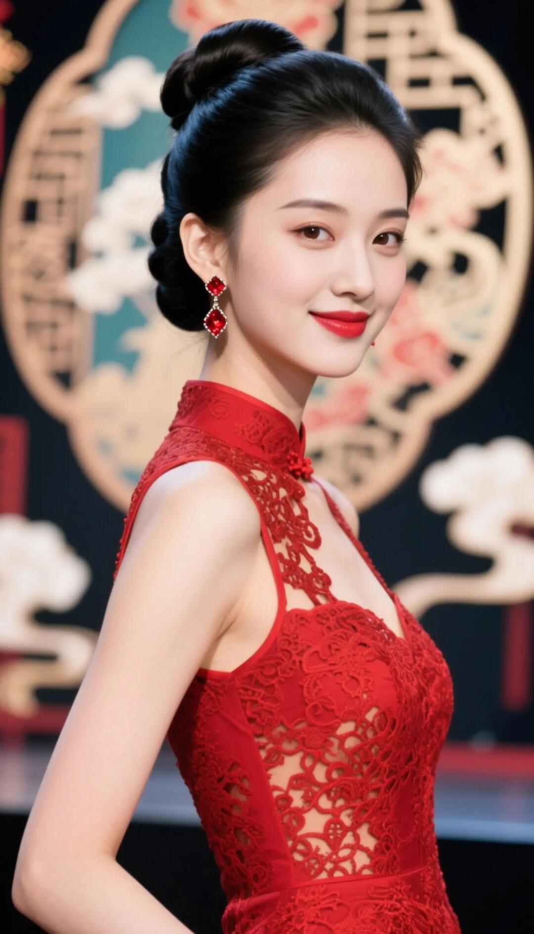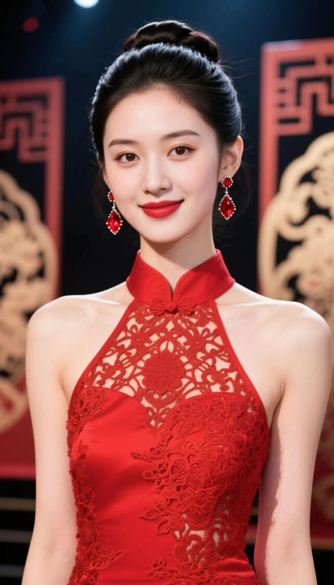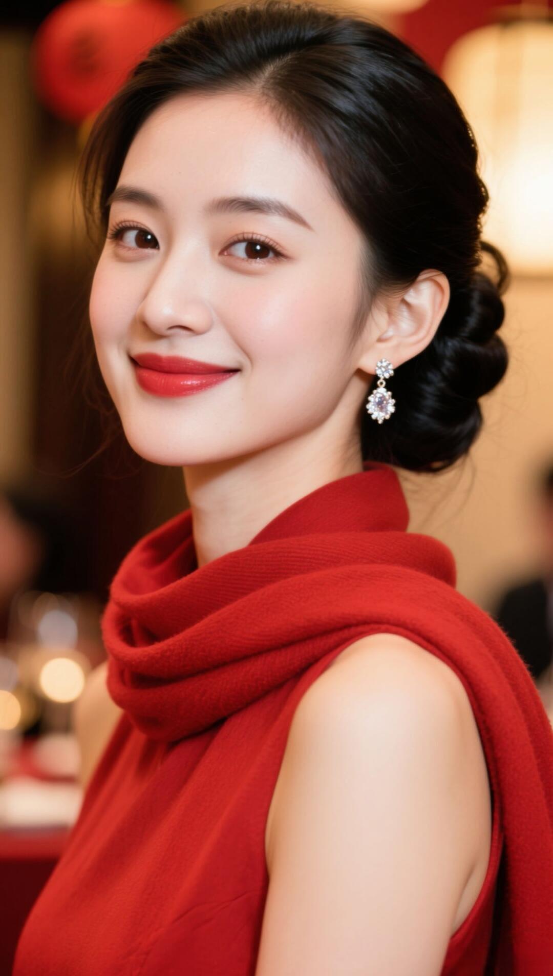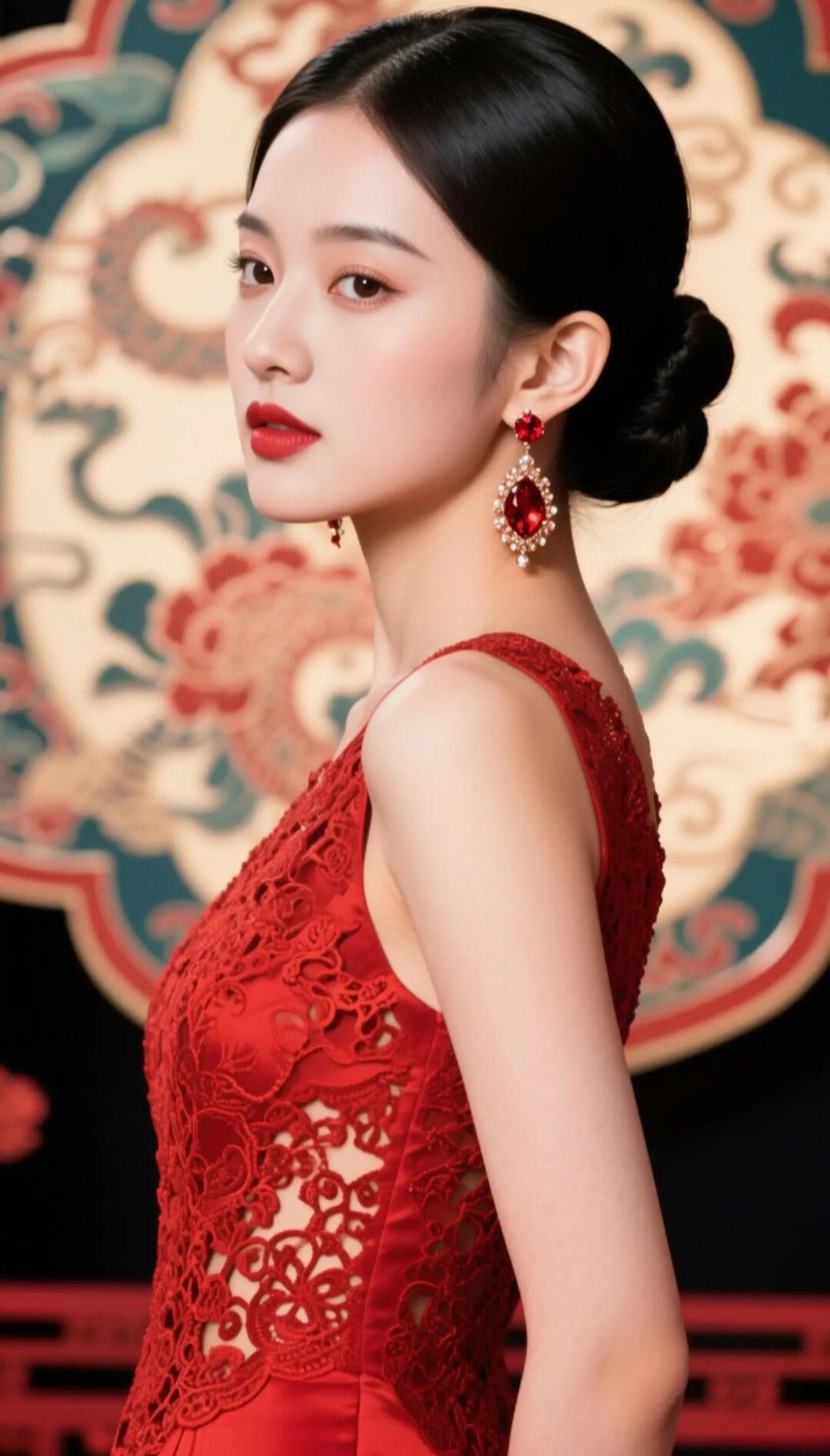 优雅红裙,闪耀耳环,东方美人气质满满!🌸💃👗