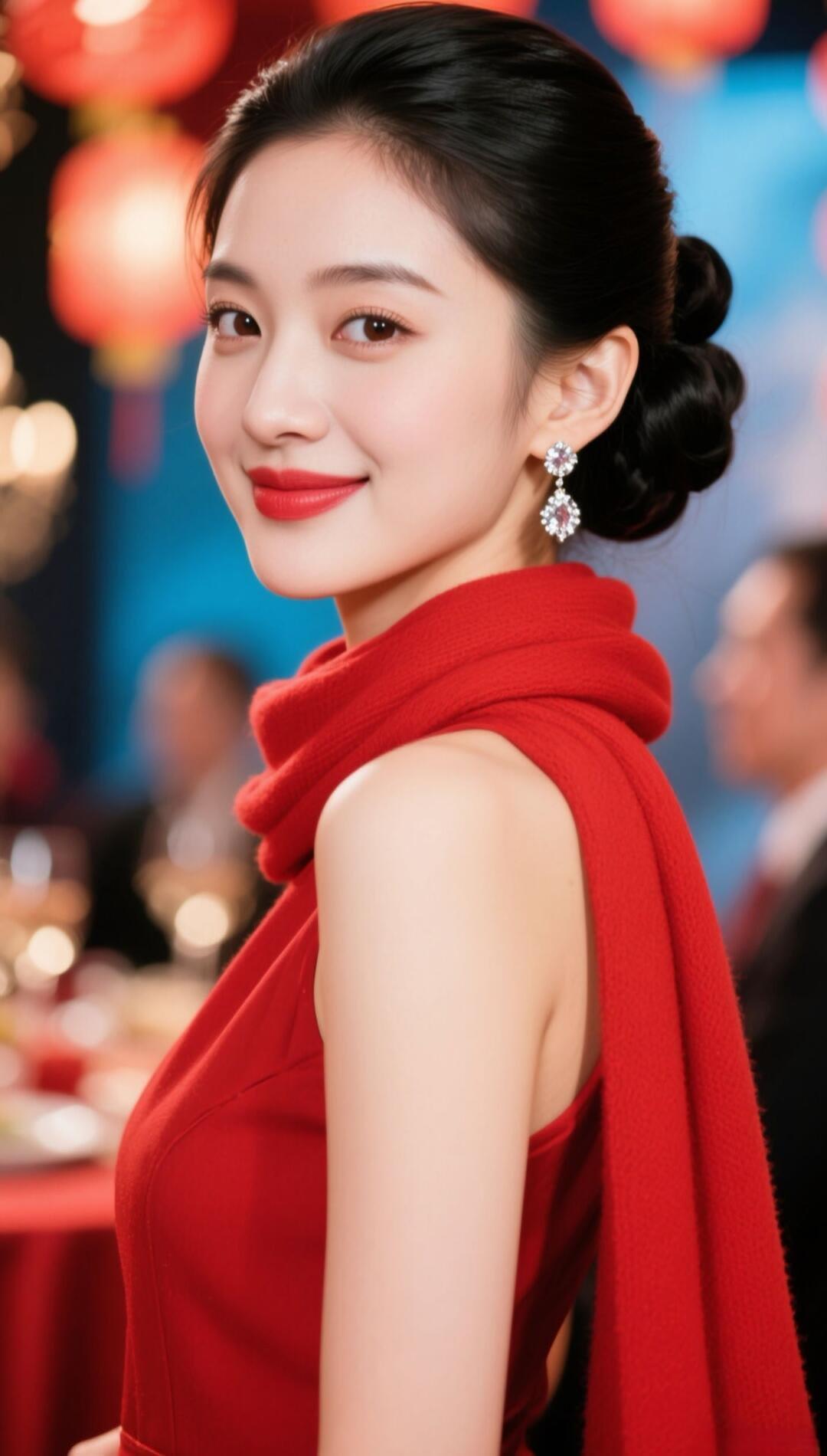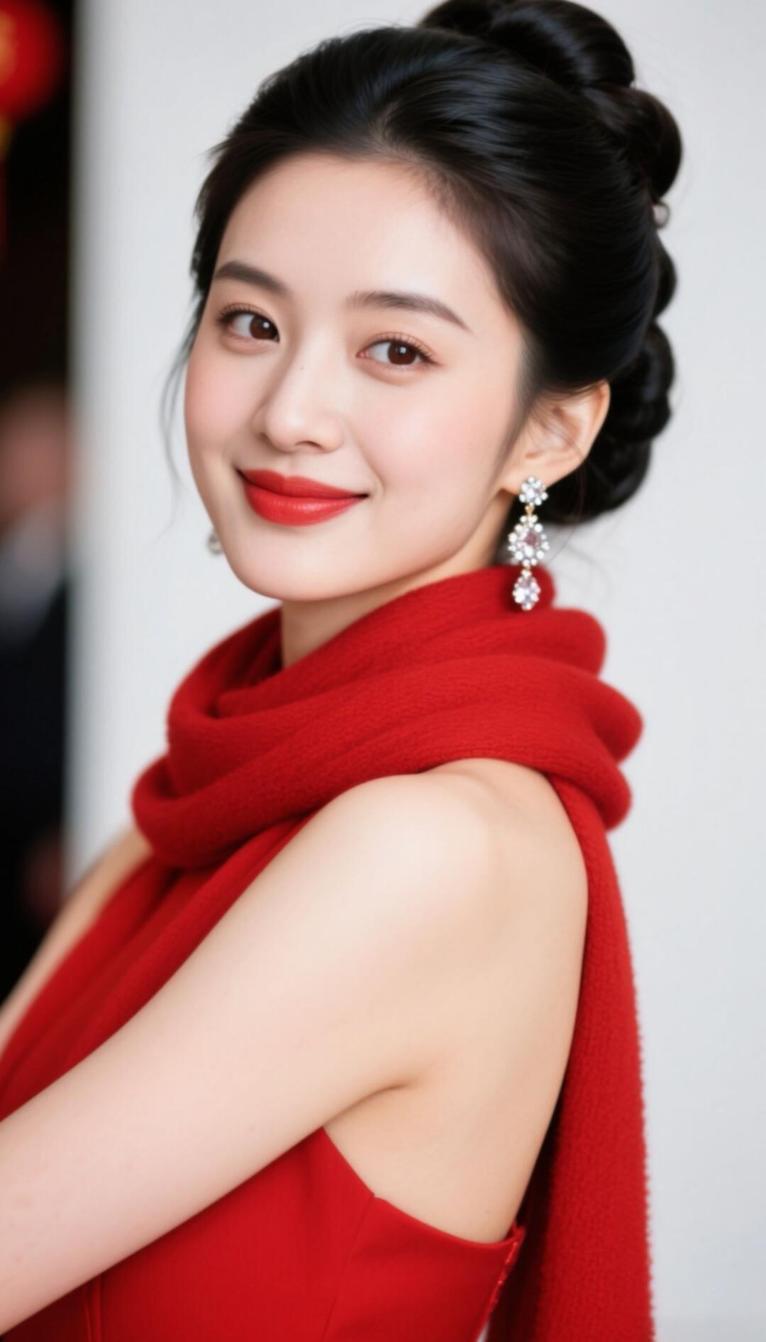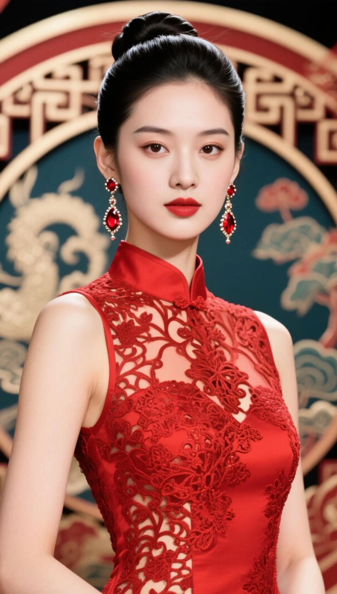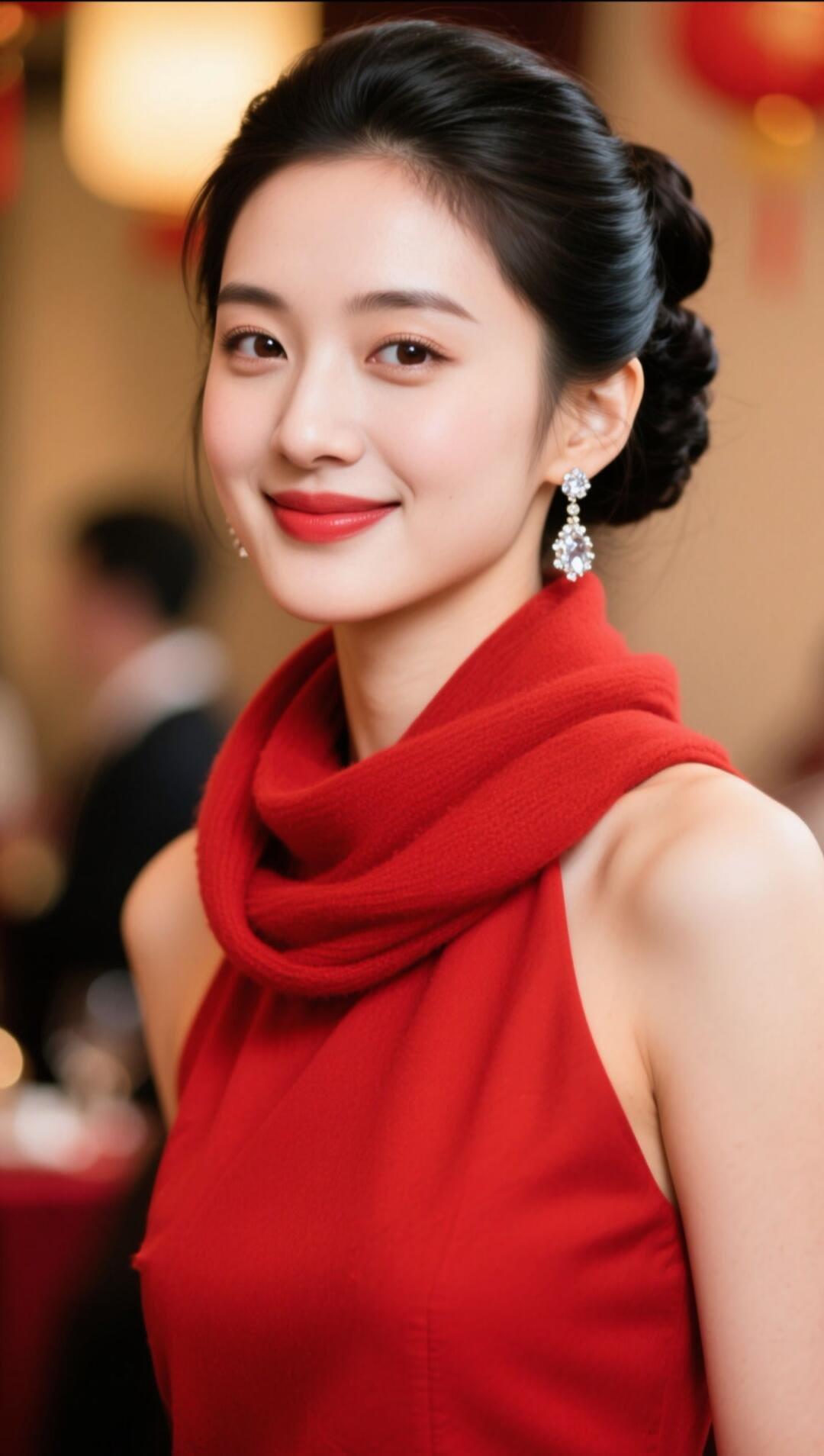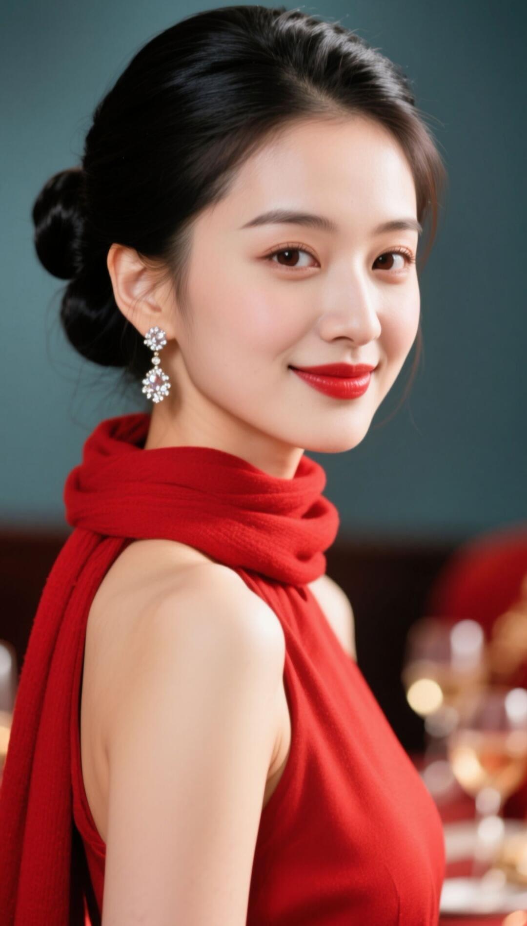 优雅红裙,闪耀耳环,东方美人气质满满!🌸💃👗