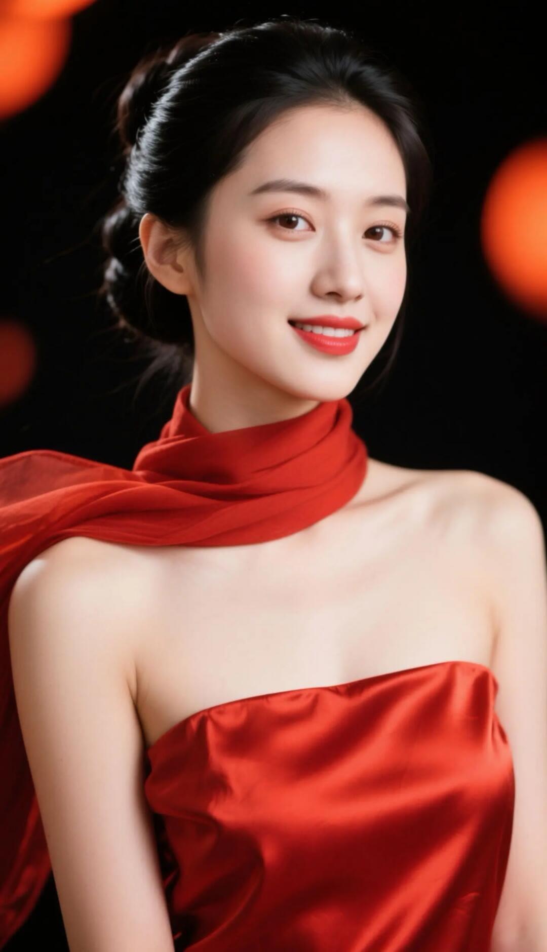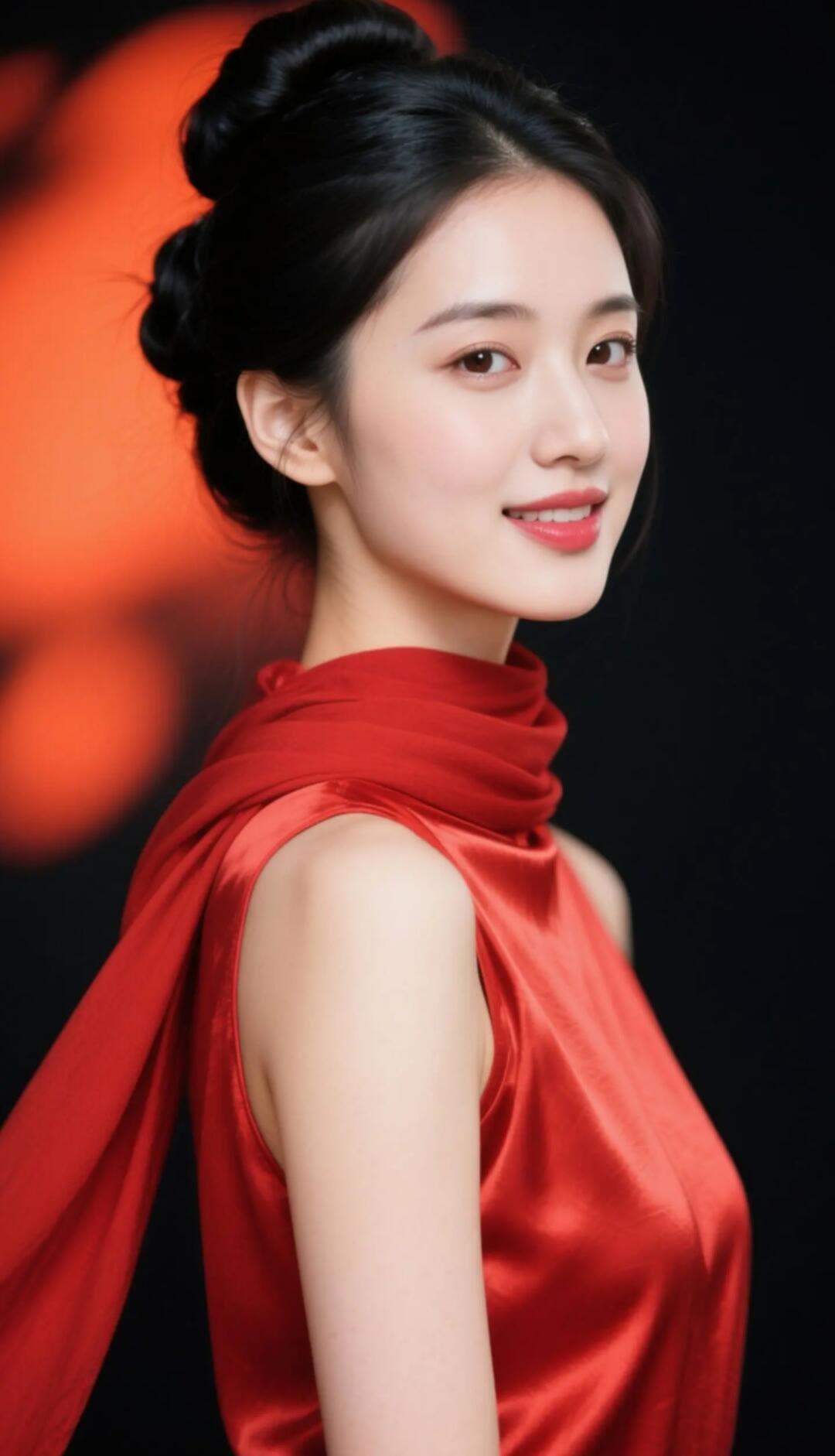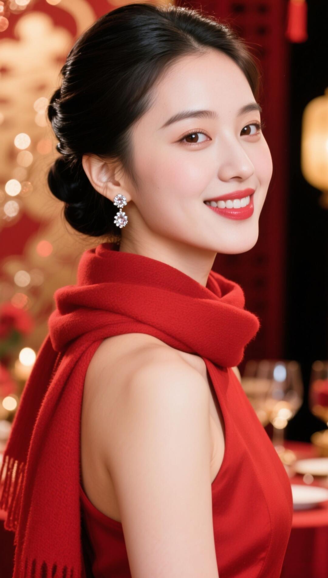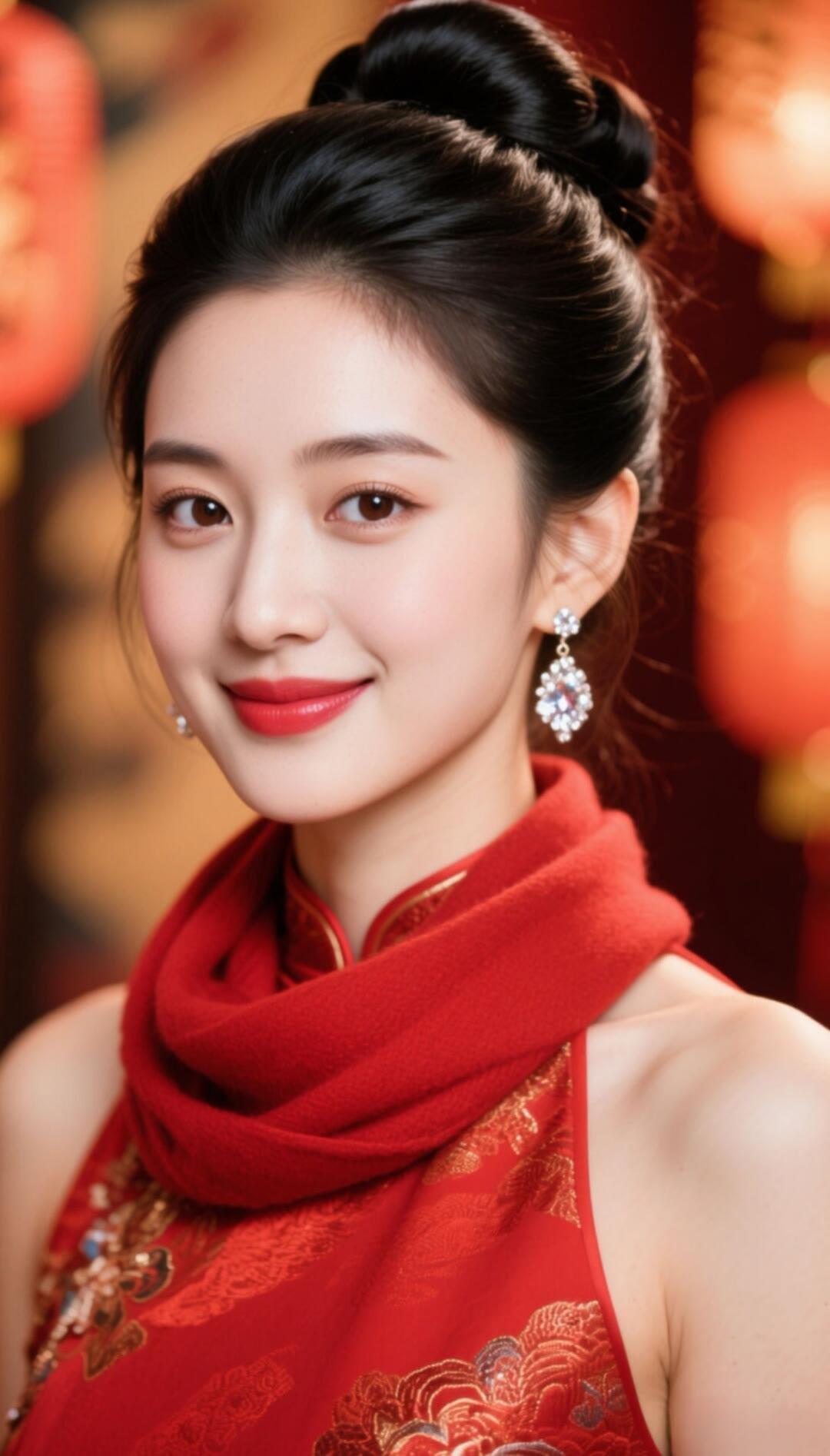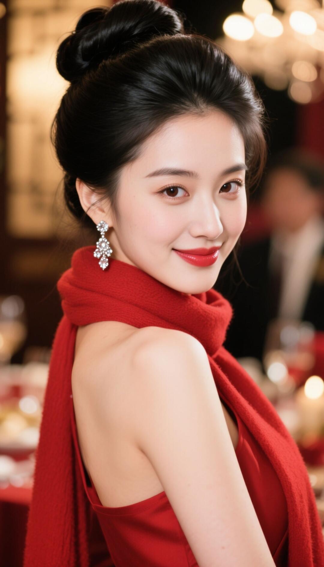 优雅红裙,闪耀耳环,东方美人气质满满!🌸💃👗