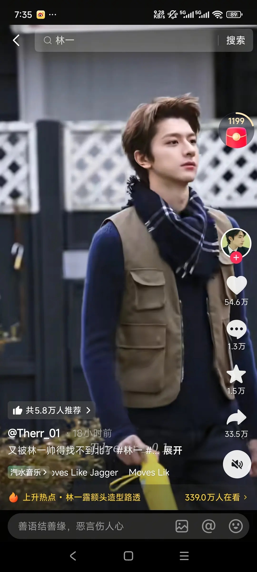 林一这次露额头的造型就硬帅啊,一条综艺路透视频50多万赞。