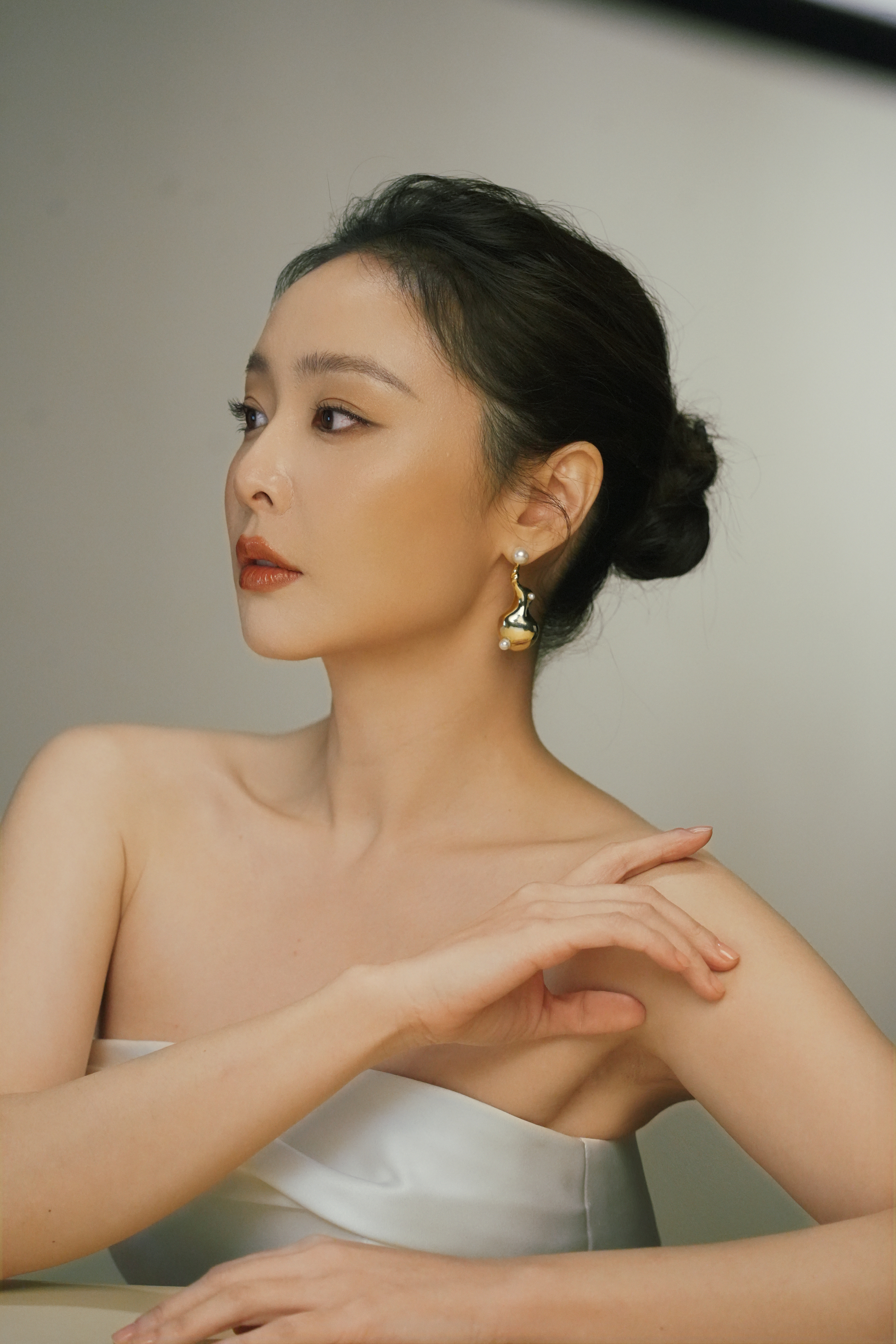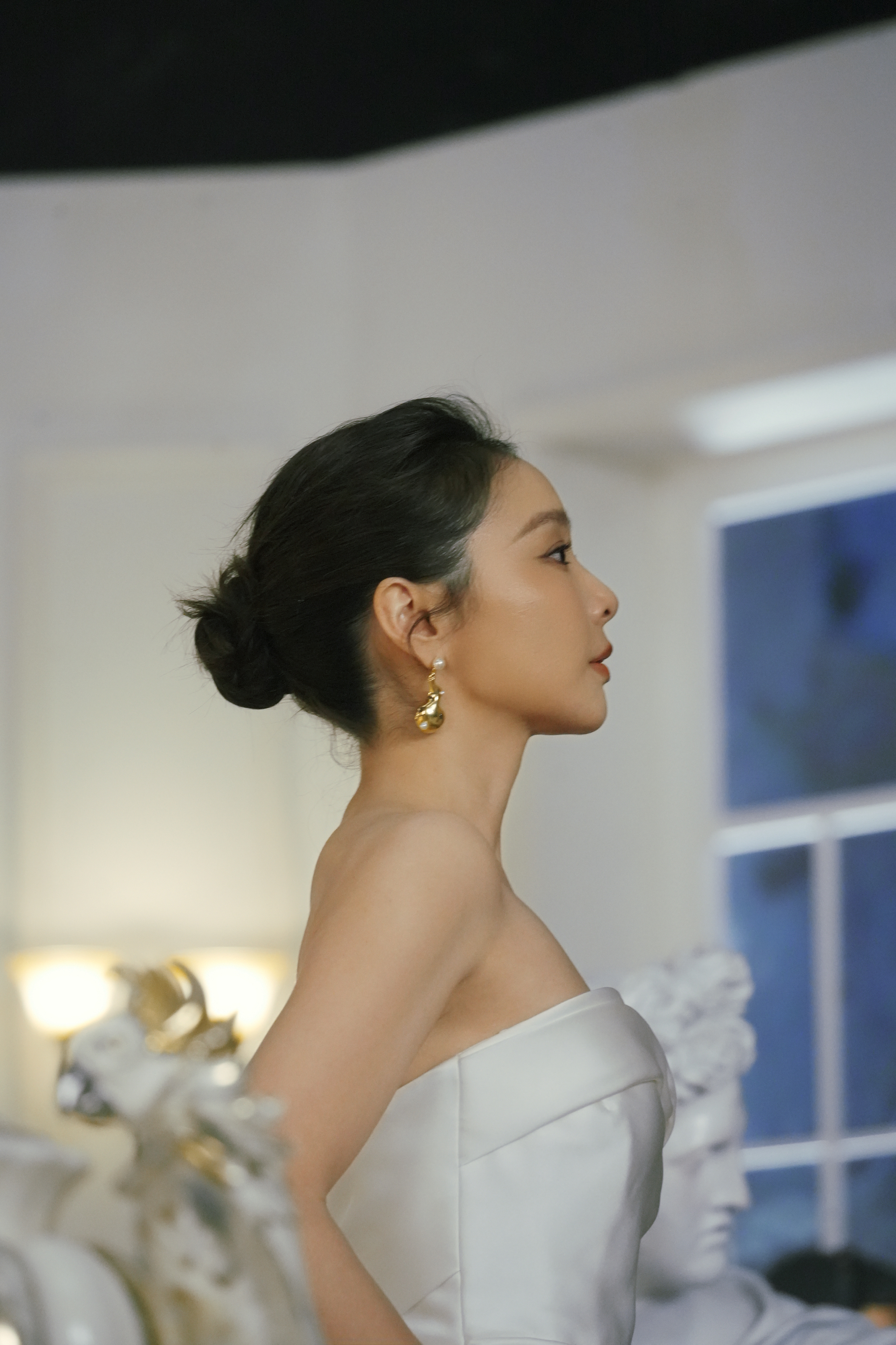 沈月 复古卷发挽起时光的韵脚,一字肩剪裁藏不住锁骨的温柔。