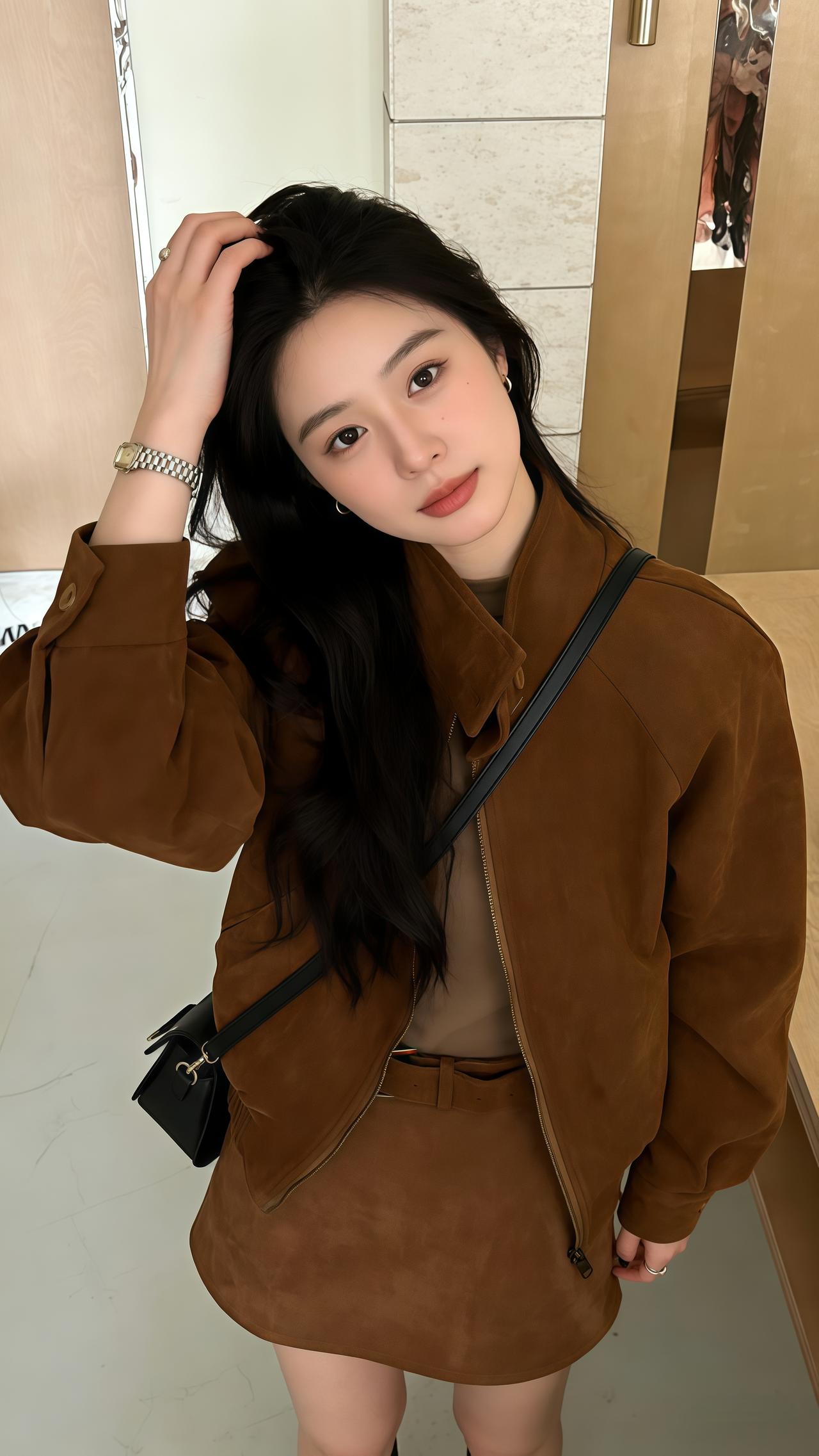 优雅气质,时尚穿搭,自信微笑,都市女性风范。