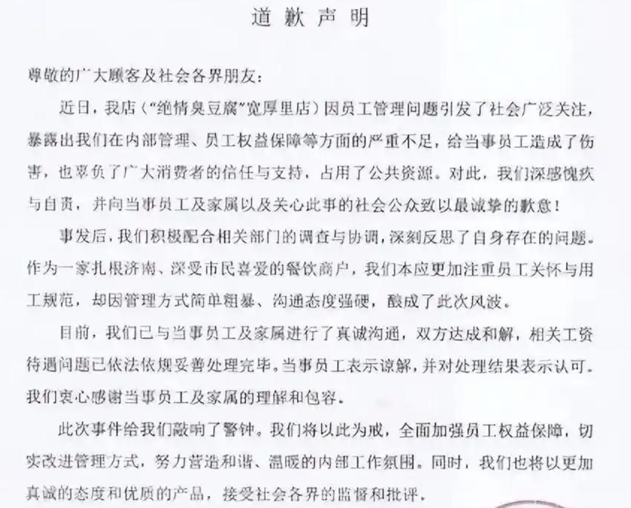 女子替父亲请假遭拒绝还被辞退事件有了新的后续!绝情臭豆腐店终于低头认错了! 就在2月28日涉事的臭豆腐店发布了道歉声明,承认了在内部管理以及员工保障上存在严重问题,已经向当事员工表达了歉意,与此同时还给予了员工N+1的赔偿。而李女士这边并没有要全部的赔偿,而是将其中2万9千多元的赔偿,捐给了韩红基金会。从结果上来看,很明显是李女士这边获胜了。可这个结果是因为涉事店铺知错了吗?我看未必! 背后无非是因为迫于两点:一个是舆论的压力,大家已经开始抵制他家店铺,如果不低头认错的话,生意可能真的就黄了。另外一个就是,李女士这边已经请了律师,沟通不成的话就要走法律途径。而在这起事件当中,很明显是涉事店铺不占理,所以最后打官司的话,还只能是他输。所以在这种局势之下,他是不能不低头的。 事实上咱们现在回想一下,这起事件不过就是一个小事,为何最后发展成为舆论事件?说白了就是涉事店主自己作的。员工在你店内任劳任怨工作,只是想要在人少的时候,请假2个小时陪闺女吃顿饭,而且甚至都到了要自愿承担扣薪了的地步了,这已经是卑微到了极致。可纵使如此仍旧被拒绝,甚至是一言不合还要开除员工。蛮横嚣张的背后其实都说明了一个问题,就是老板对员工的畸形关系。 从法律的角度来看,员工与老板之间是平等的雇佣关系。可在现实中员工与老板的关系,往往都是要错几个辈的,毫不夸张地讲,老板训员工跟训孙子一样。根源在哪?其实就在于狼多肉少。3000块钱的工作,你不愿意干有人愿意干。委屈你不愿意受,有人愿意受。在这样的前提之下,为了保住自己的工作,一些员工不得不委屈求全。这也是为何李女士的父亲连假都不敢请的真相!所以哪怕是干掉了一个臭豆腐店,还会有更多地臭豆腐店。