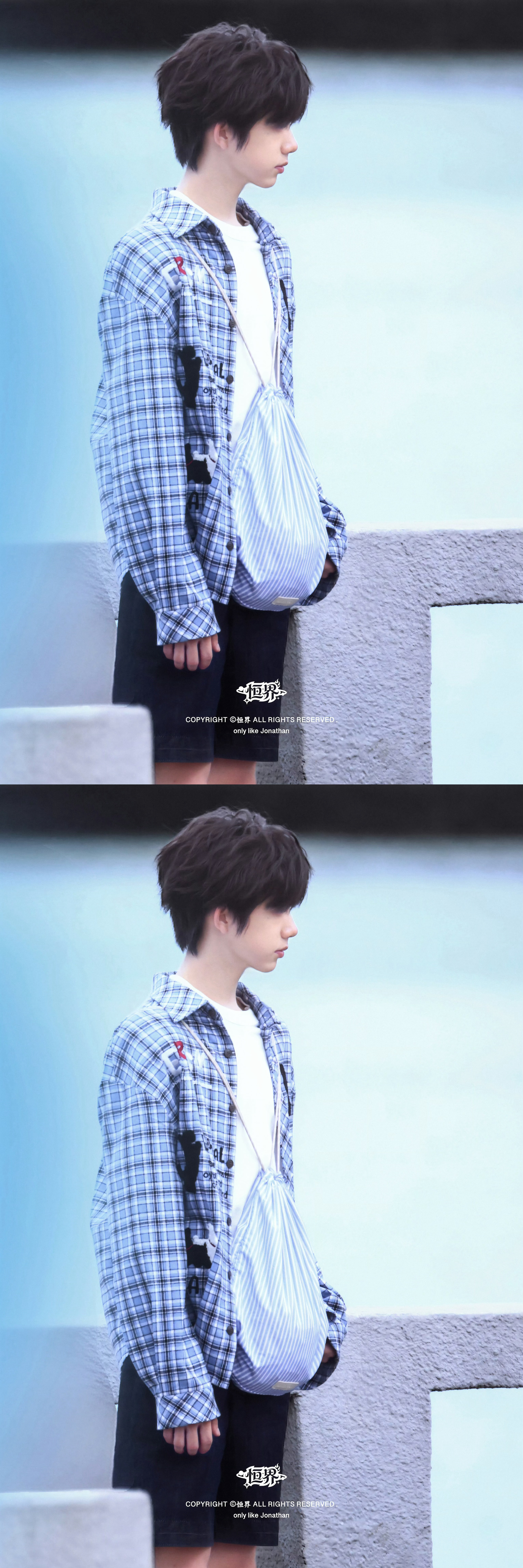陈奕恒格子衬衫造型陈奕恒新剧海边路透陈奕恒我们的少年时代2新鲜路透,格子衬衫好