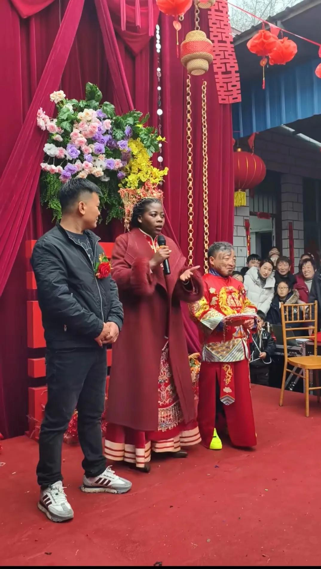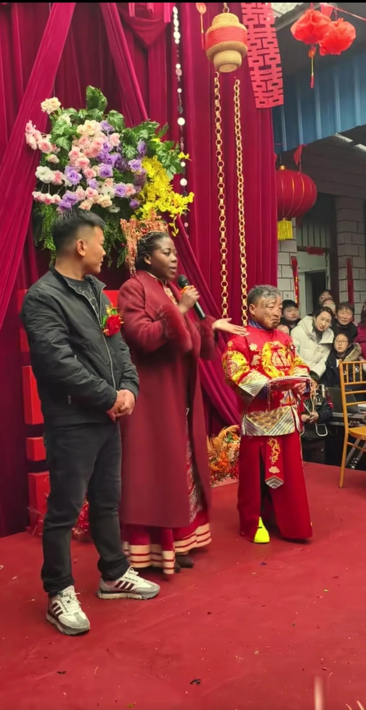 一直以为穿黑色衣服的是新郎,最后才发现旁边花脸的是新郎官。