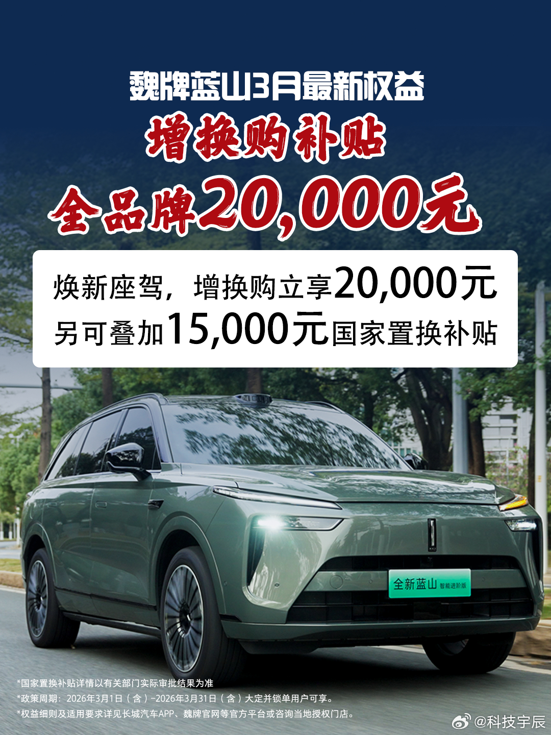 魏牌蓝山获11万家庭认可,技术安全双过硬。3月限时直降+高额置换补贴,权益拉满,30万级大六座家用省心。