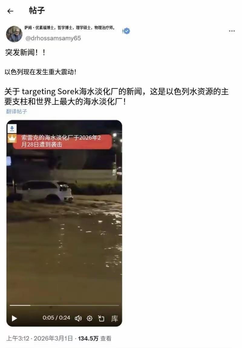 以色列说:没事,淡水没了可以喝海水。
