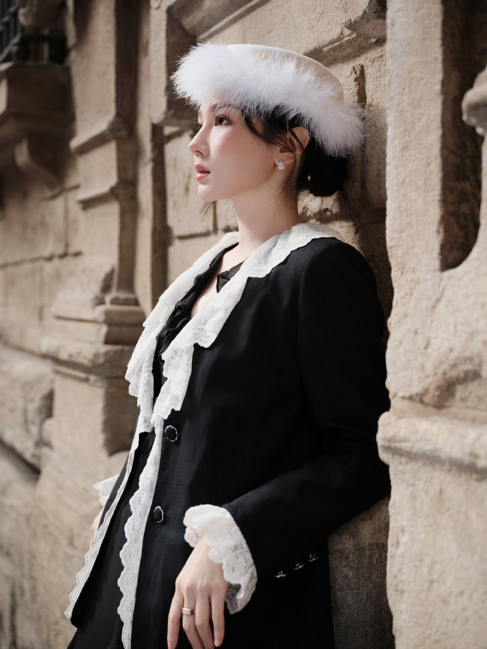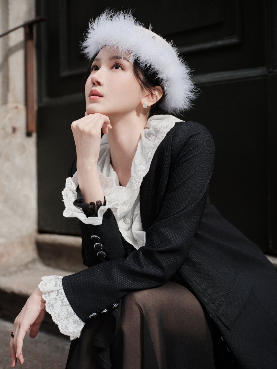 陈小纭米兰时装周首秀 被这套造型圈粉了,把蕾丝穿出了温柔的力量感,米兰街头最亮眼的东方美人。